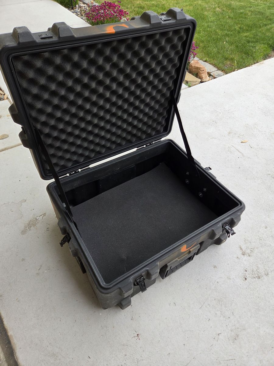 Military grade waterproof case with wheels and retractable handle. This case is padded on the inside with a rubber gasket around the lid. Here is the model to compare to new. Just copy and paste inton your search engine. Asking $200 obo. skb.3R2217.10B.DW