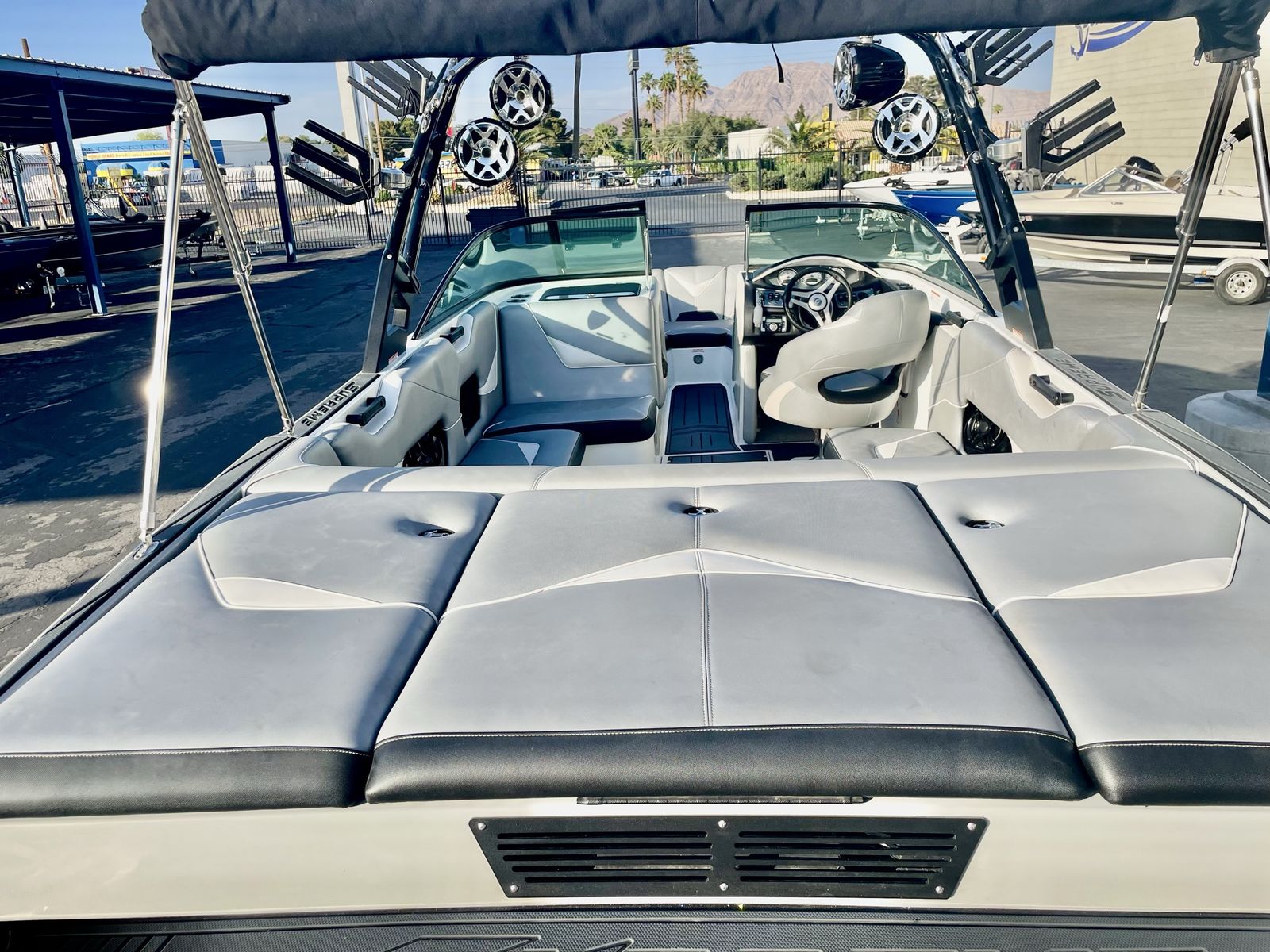 Premium Supreme S238 surf boat rental available for Utah lake adventures. Perfect for wakesurfing, wakeboarding, and all-day lake cruising with friends and family.