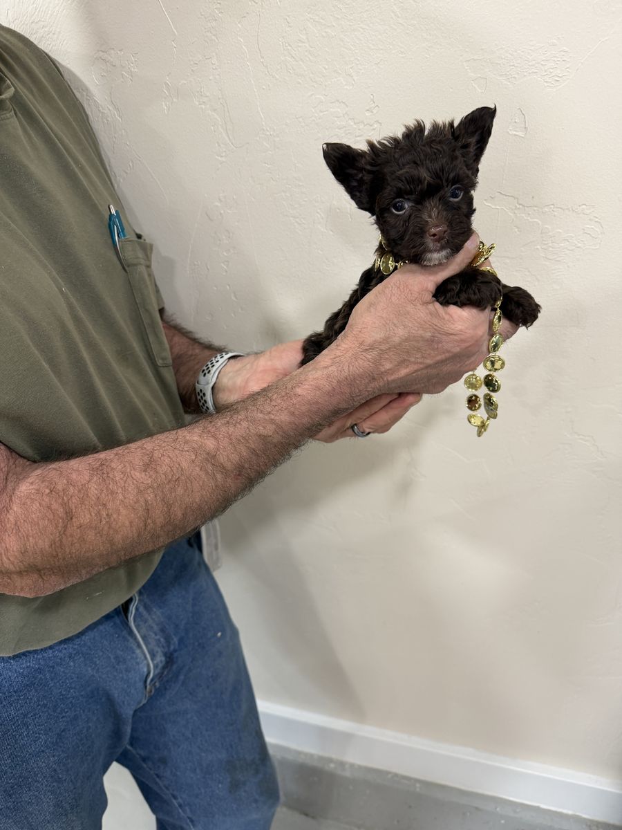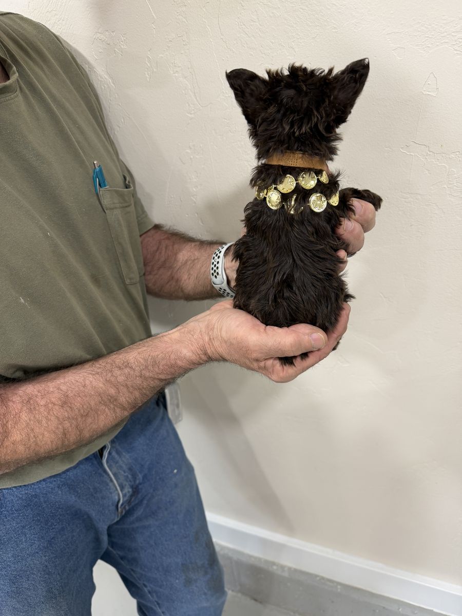 PayPalHerch is a cute lovey pure chocolate yorkshire terrier and no tan BOY. He is from a litter of five babiees. He loves people and loves to play. He is not shy and loves baby talk. Doing well on potty pad. Mom 5lbs is a pure chocolate and Dad is maybe 4lbs wet! and is a chocolate. Herch is charting at 4lbs full grown.