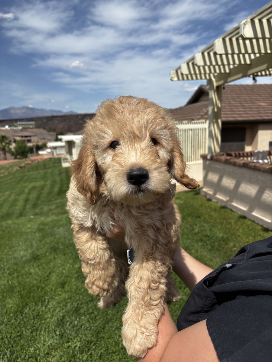 ApplePayMom is a 60 pound pure bred Golden Retriever and Dad is a 6 pound poodle. he is looking for his forever home! He is the last puppy in the litter. He will be anywhere from 20-40 pounds most likely. Send me a text or call me if interested. 801-995-8946 has had first round of shots and will come with a leash collar etc. He is almost 11 weeks