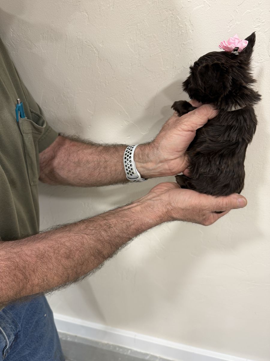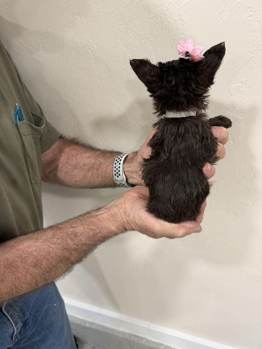 PayPalPinky is a cute lovey pure chocolate yorkshire terrier and no tan. She is from a litter of five babies. She loves people and loves to play. She is not shy and loves baby talk. Doing well on potty pad. Mom 5lbs is a pure chocolate and Dad is maybe 4lbs wet! and is a chocolate. Little Pinky is charting at 3 1/2-4lbs full grown.