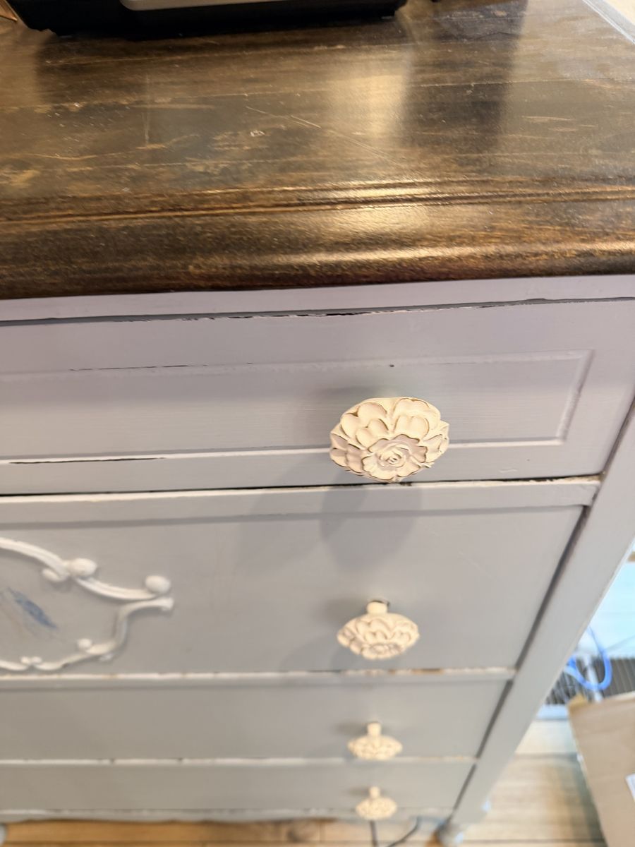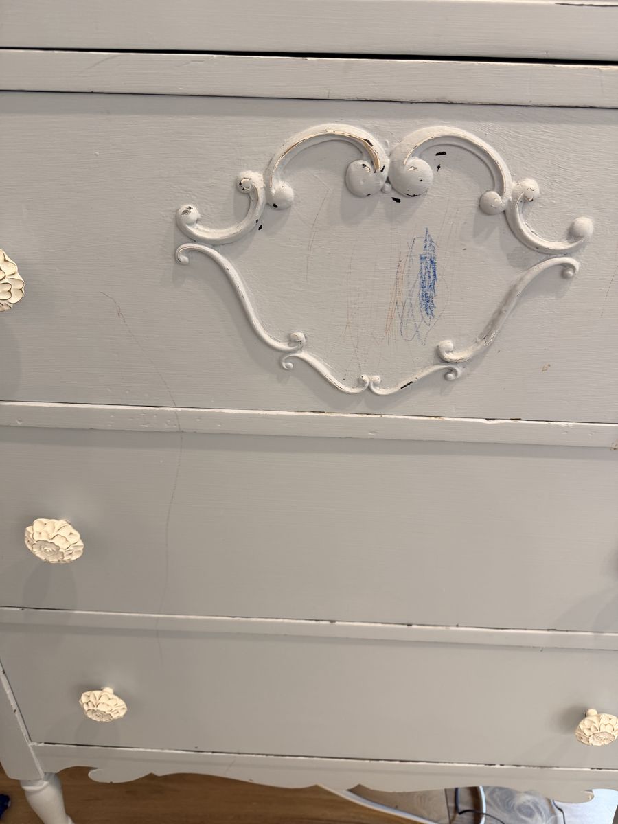 VenmoAntique blue dresser. It’s been in our home used as decor so mostly left alone. There are some crayon markings from children that I haven’t tried to clean off, I’m thinking Magic Eraser would do the trick. Top is dark stained wood. Drawers do not glide, they move look old wooden drawers. The wood is in good condition. $50 cash or Venmo. Pick up in Cottonwood Heights. Probably needs two people to move.