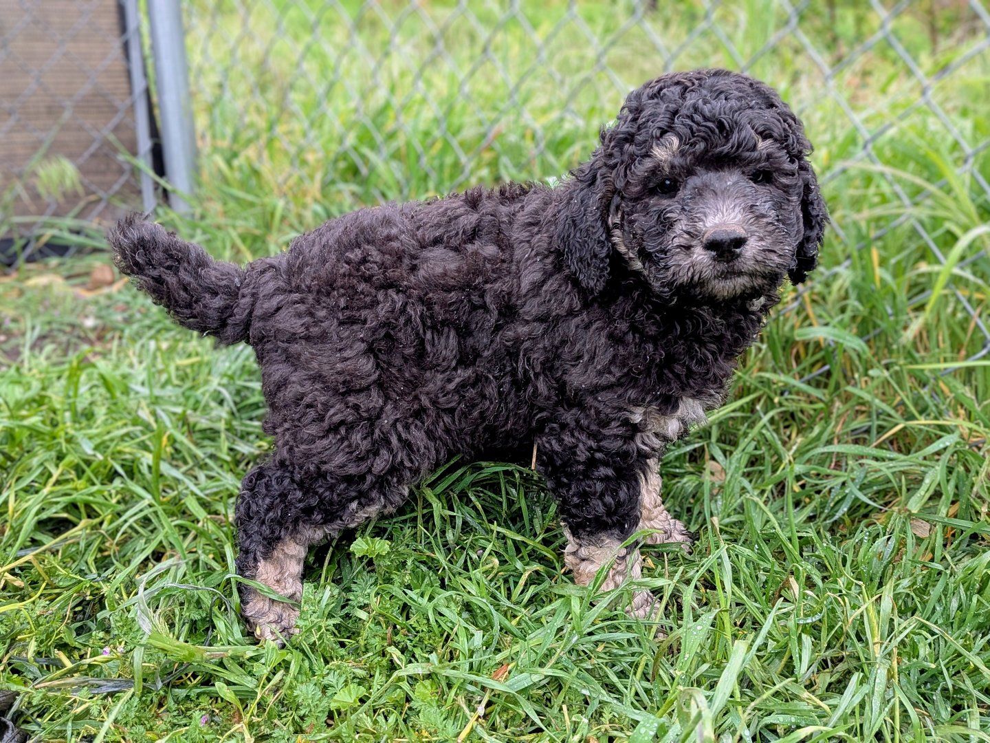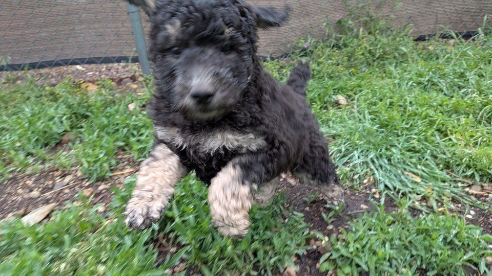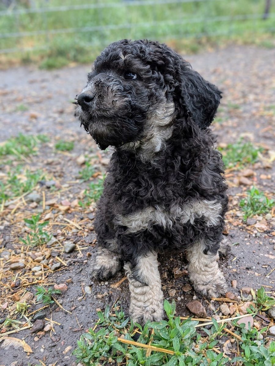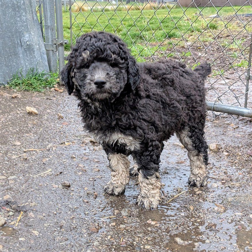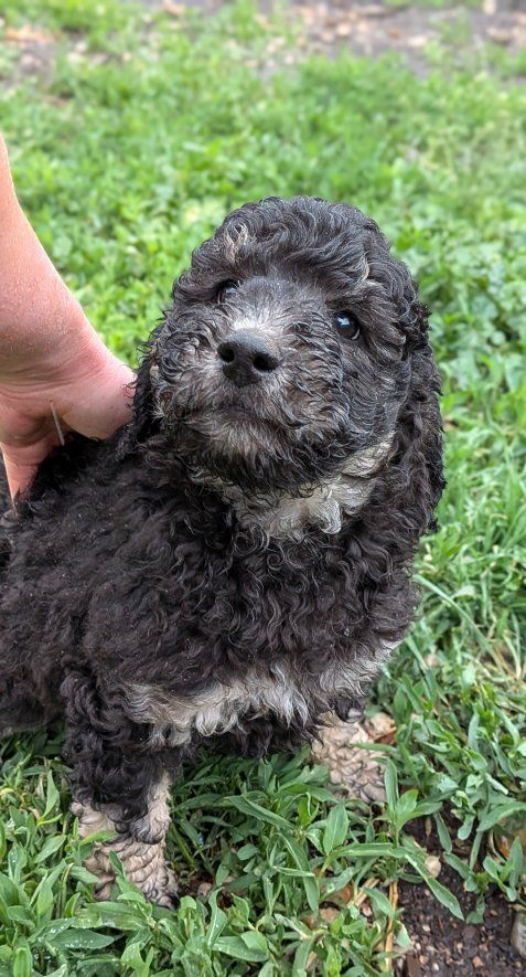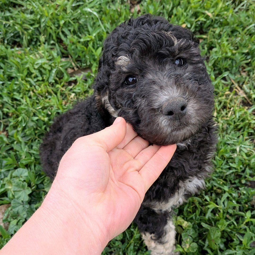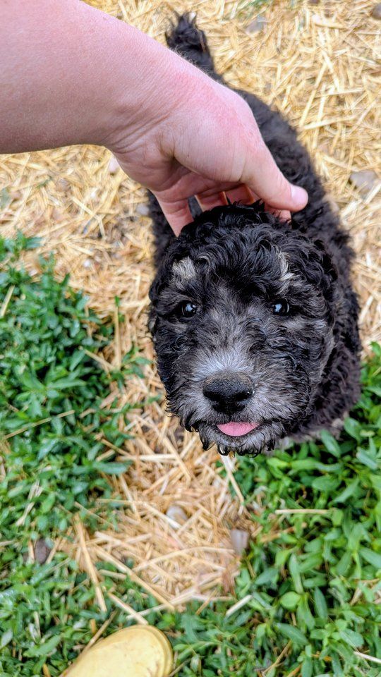 Keep in mind that these are not "purebred" poodles. Genetically they are 100% poodle, but the merle color (Rodeo's sister is Merle) is not a naturally occuring poodle color and denotes there was cross-breeding to a different breed somewhere along the line (we know it was on dad's side. Mom is AKC and CKC. Dad is only CKC). You can still expect all of the poodle traits and characteristics, they just can't be shown in conformation show competitions (which most people aren't planning for their pup anyways.) We don't want anyone to feel misled. But if you are looking for a great no-shed family dog with a manageable size, look no further!