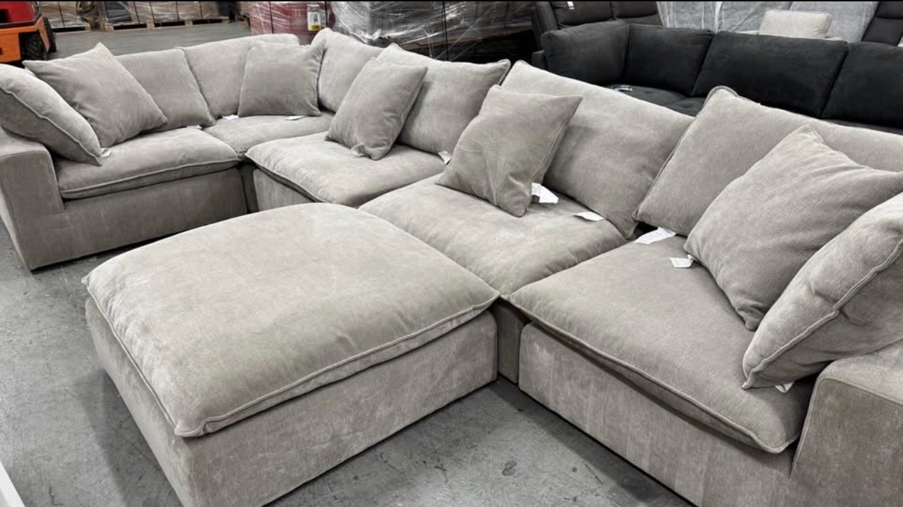 GooglePaySereen 6 piece Fabric Modular Sectional, Taupe Special order 6 piece Price was $2850 Luxury order Brand New open box