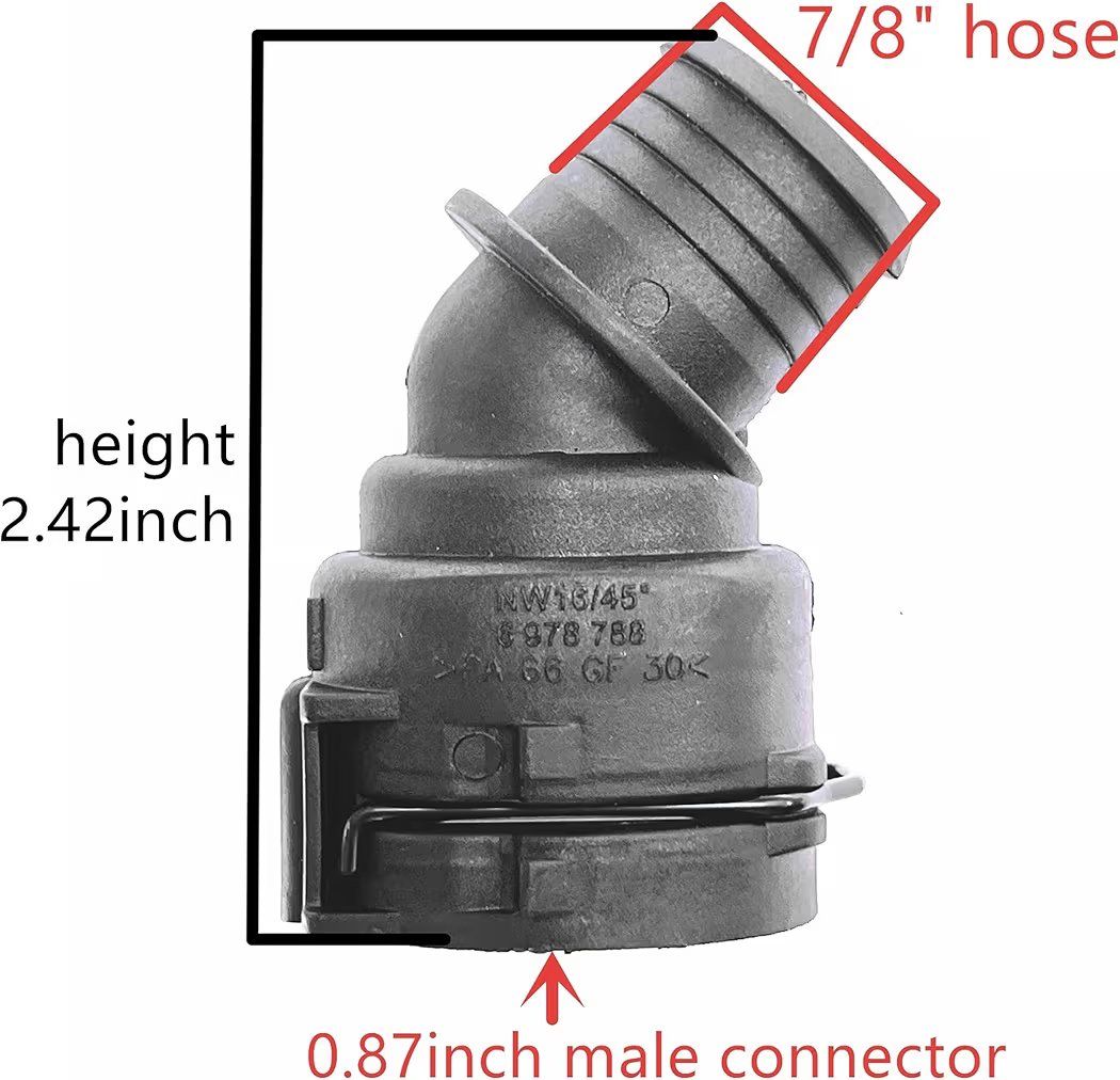 NW16 Coolant Hose Connector Adapter,Radiator Pipe Line Fitting for BMW,Mercedes-Benz,Audi,VW,Volvo,Porsche,Land Rover,MINI,Jaguar,Engine Heater Hose Assembly,Tube Coupler Repair Kit,Elbow Nipple 7/8 inch, 45 Degree.
