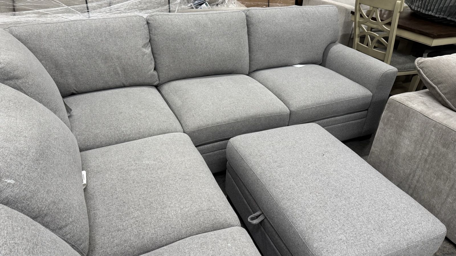 Sleek Transitional Design Generous L-shape, Perfect for Family Gatherings Modern Mailbox Arm Design with Detailed Welting Block-style Legs for a Sturdy, Timeless Base Coordinating Storage Ottoman for Stylish Convenience