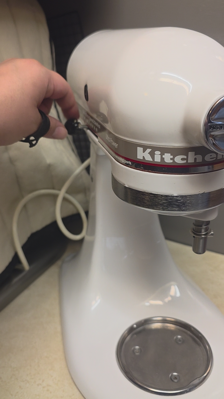 VenmoWhite ultra power tilt head KitchenAid. Just had its annual tune up, which included new grease, gear inspection, timed speed board, and adjusted the tilt of the head so the attachments don't hit the bottom of the bowl.
