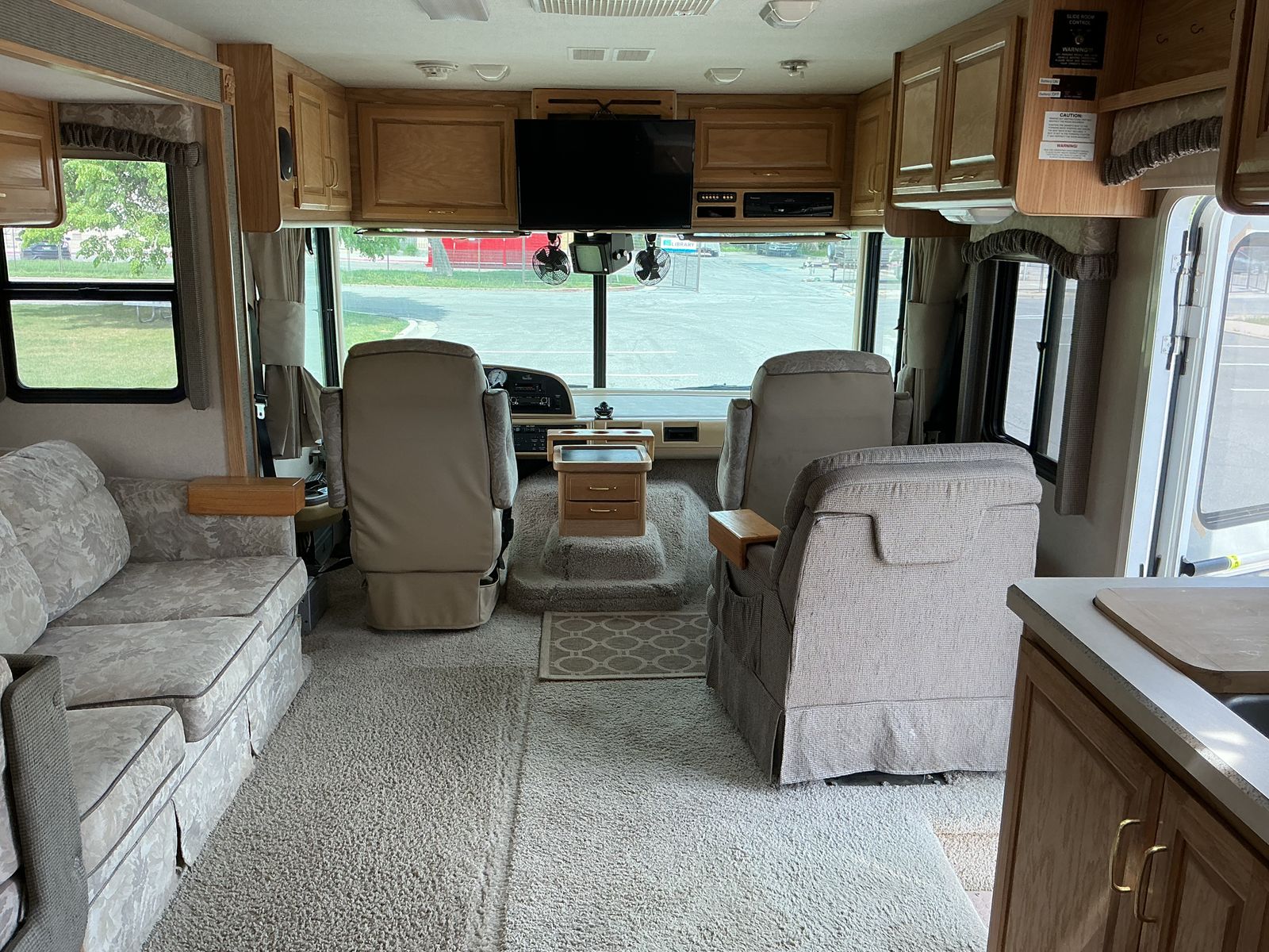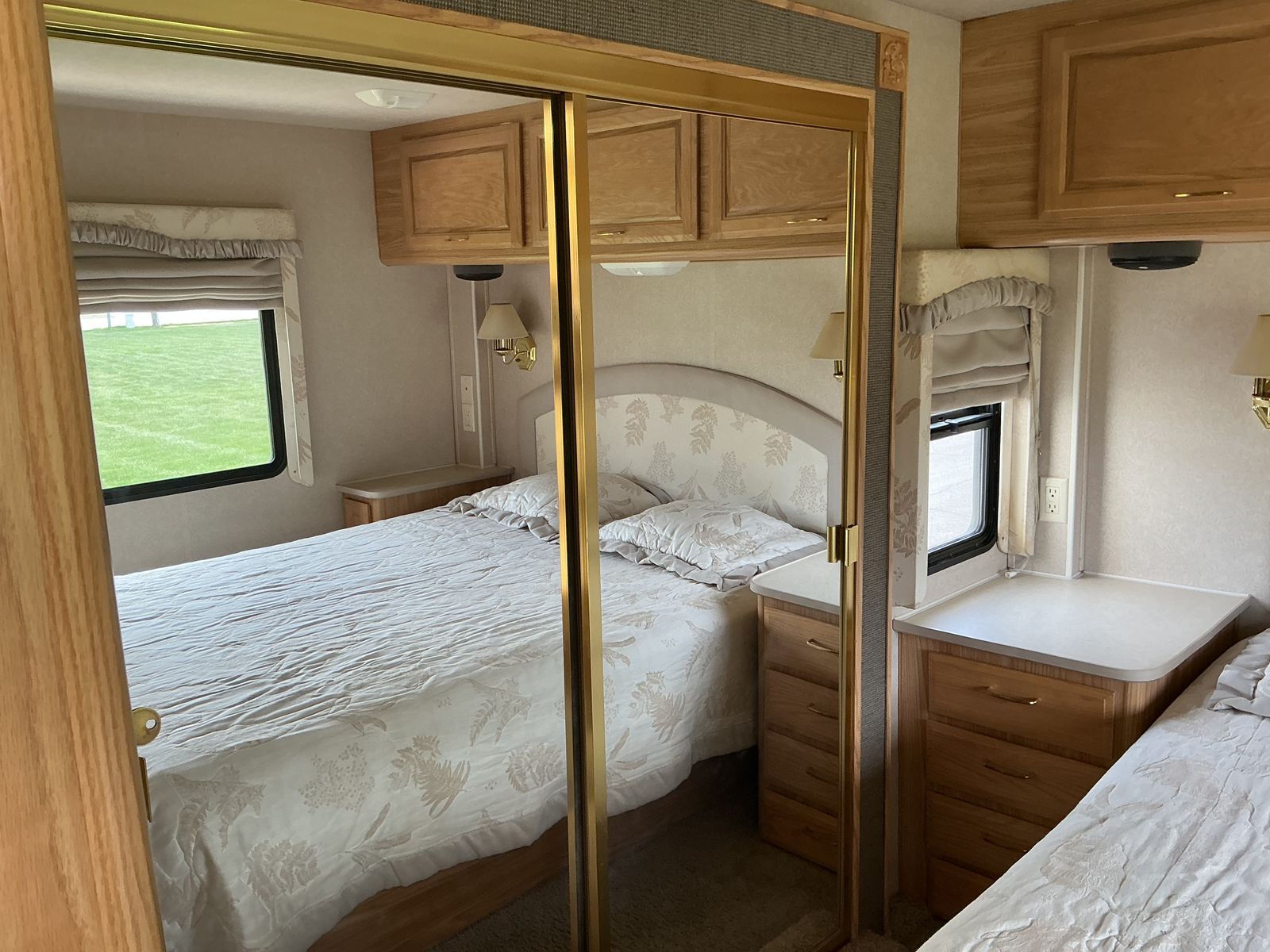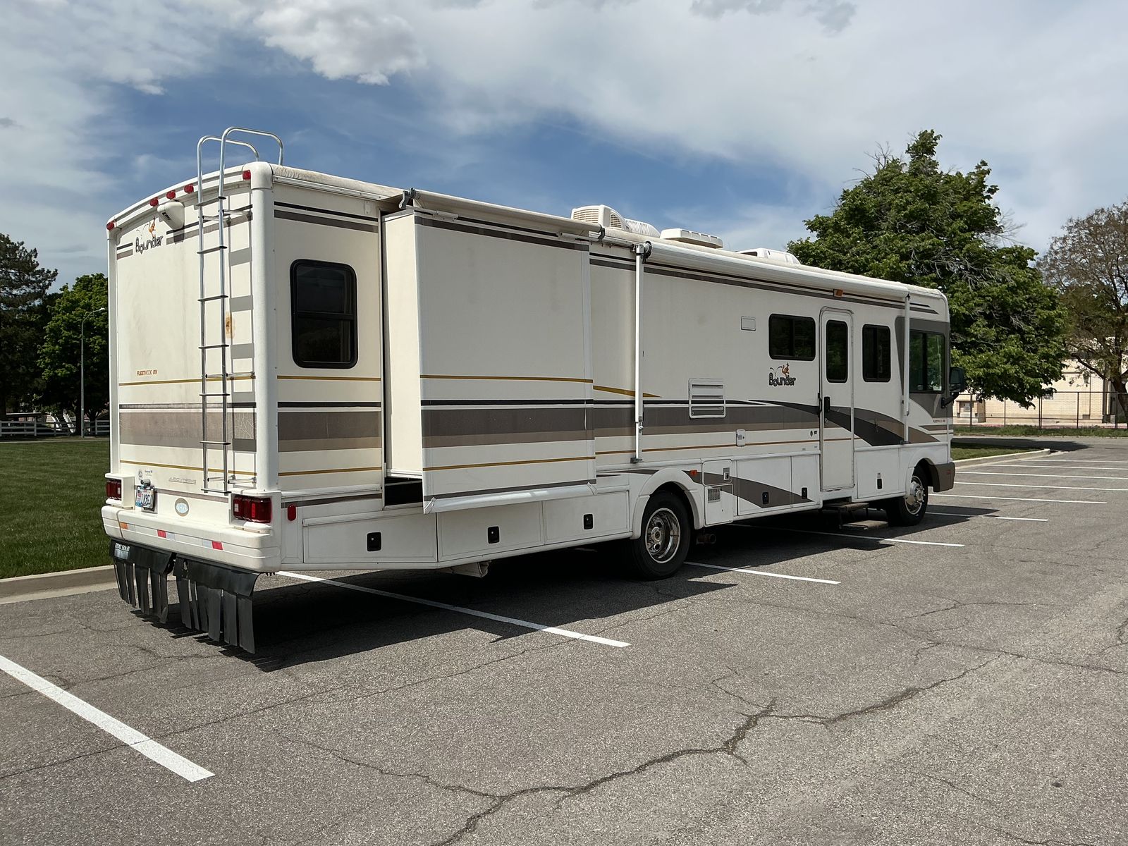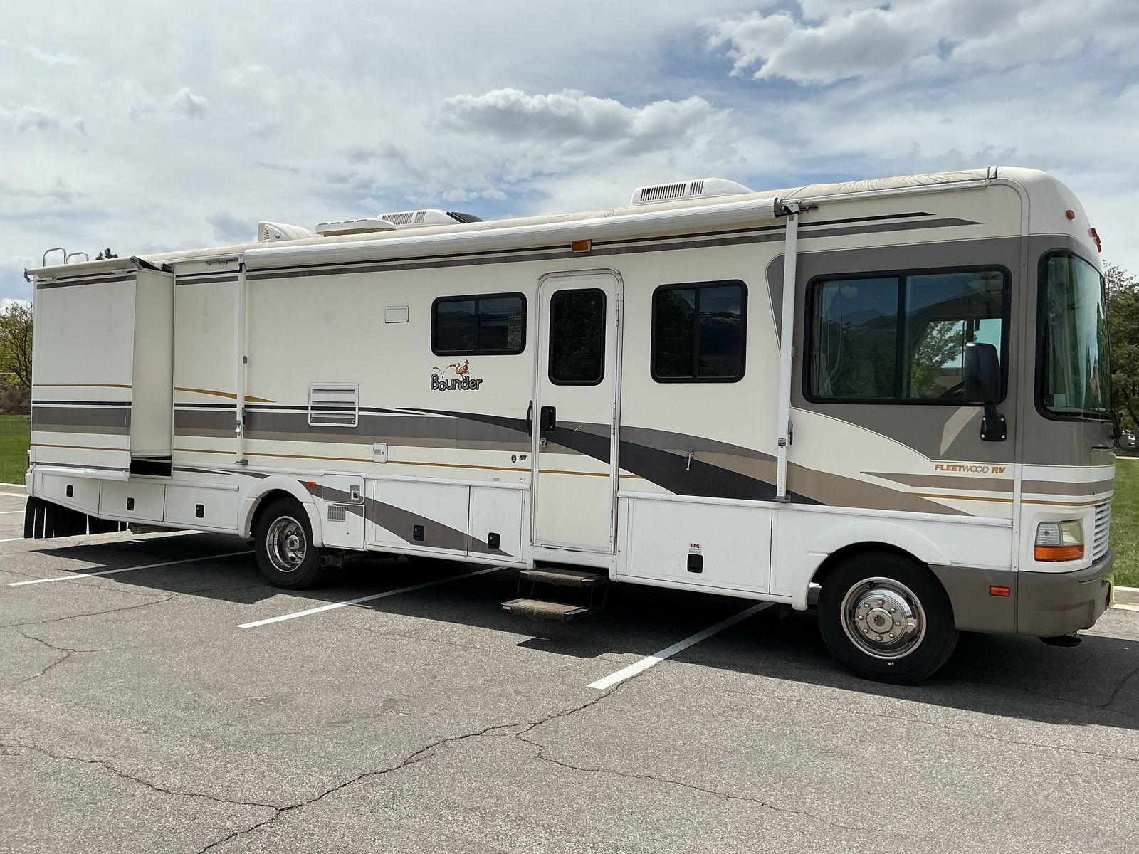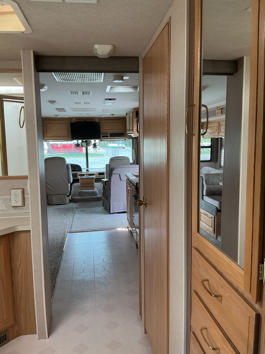 34' "T" Ford Triton, 2 slides, sleep 6, new microwave, rear airlifte bags & stabilizer for better handling. Also 2 roof mounted A/C. Miles 41,300, 6 good Michelin tires. Has awning, solar and Lots of bottom storage. Would consider trade for newer travel trailer in excellent condition with power awning, 1 slide, lite weight, length 24-27 '..