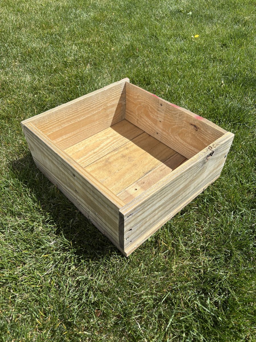 VenmoPlanter box made out of a wood pallet. 1 foot by 1 foot. Sits on the ground