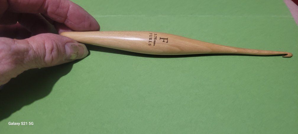 Gently used wooden crochet hook box is in rough shape discontinued edition Furls Streamline size f