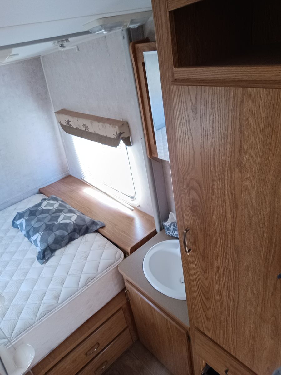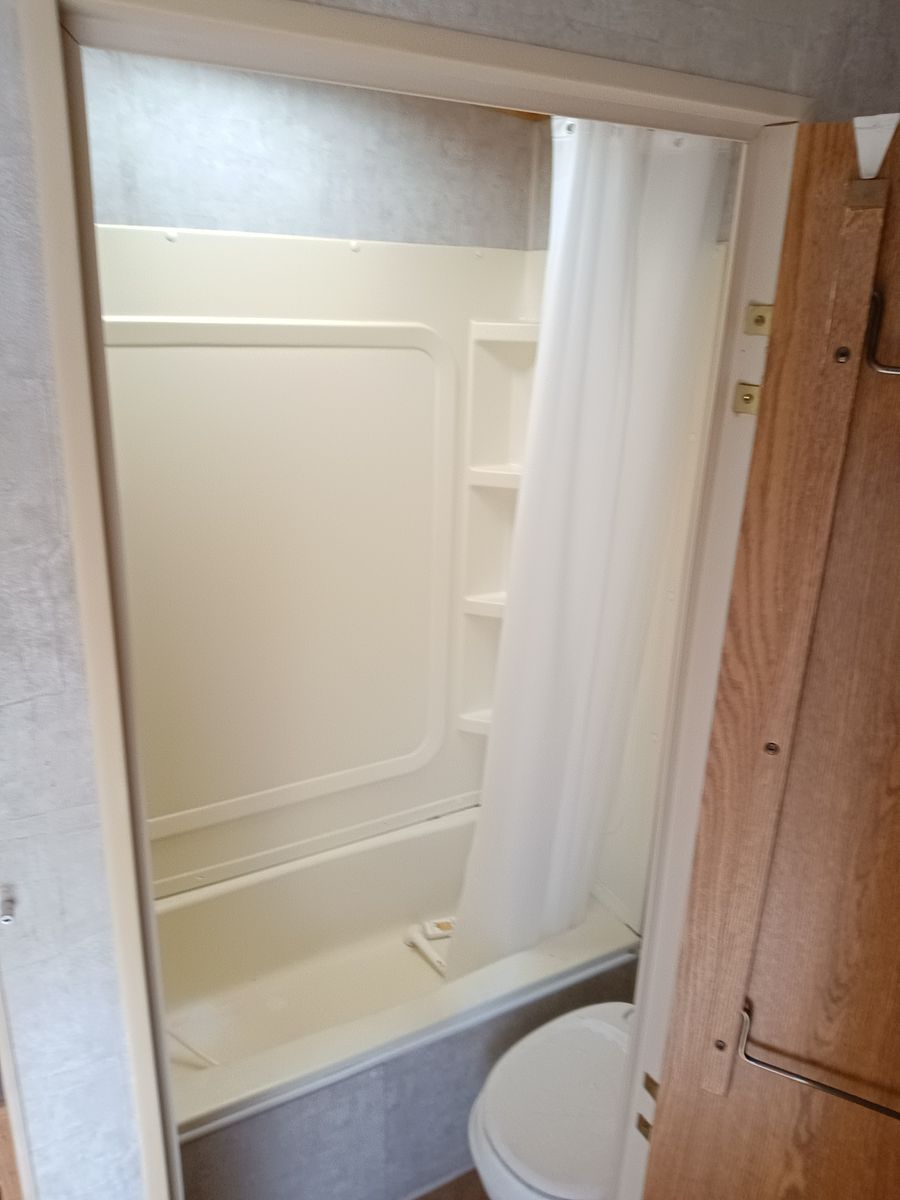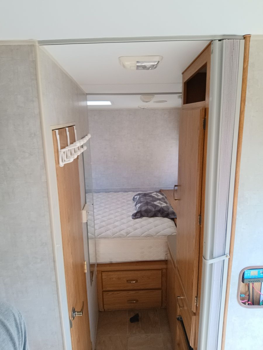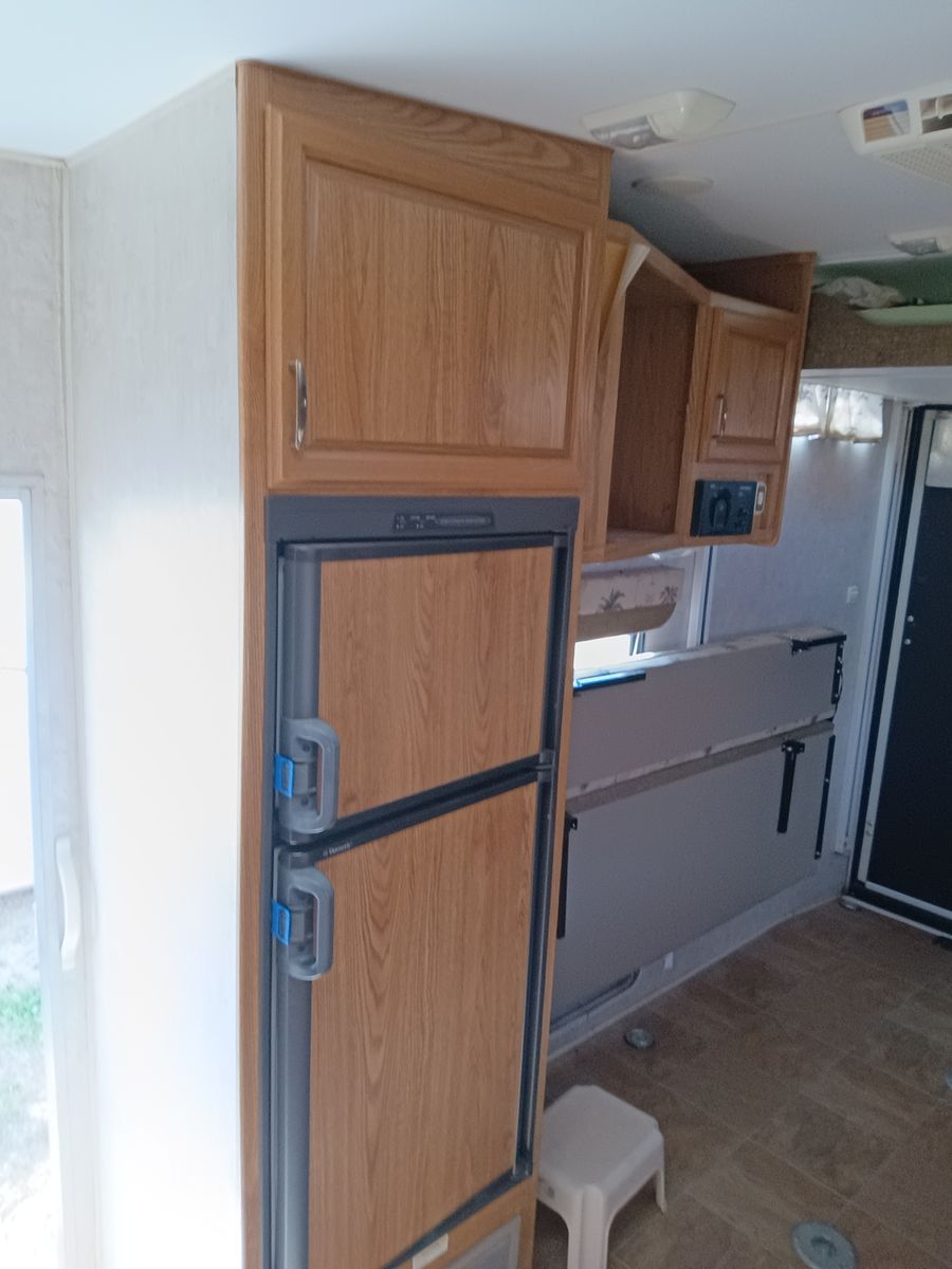 We bought it after prev owner let sit too long. We restored bathroom ceiling and vents as well as sealing up roof. Needs finished, but usable as is. No Leaks. I applied new roofing and the temp dropped as well as rained that night so roofing needs reaplied. Countertops have delaminated and need re-glued or new laminate.
