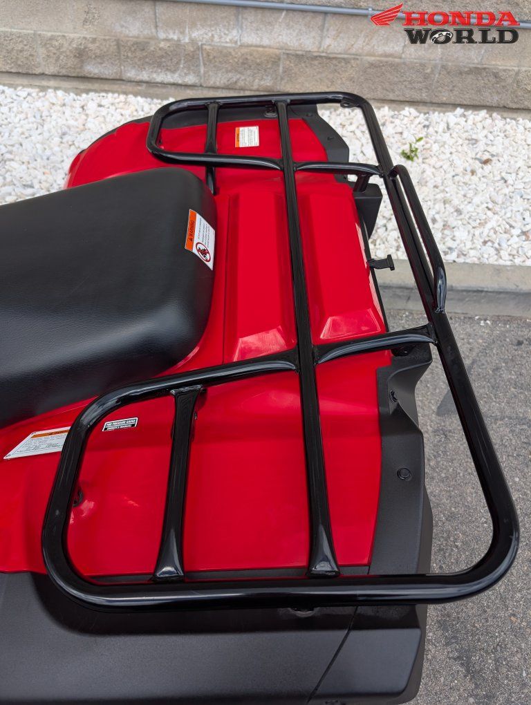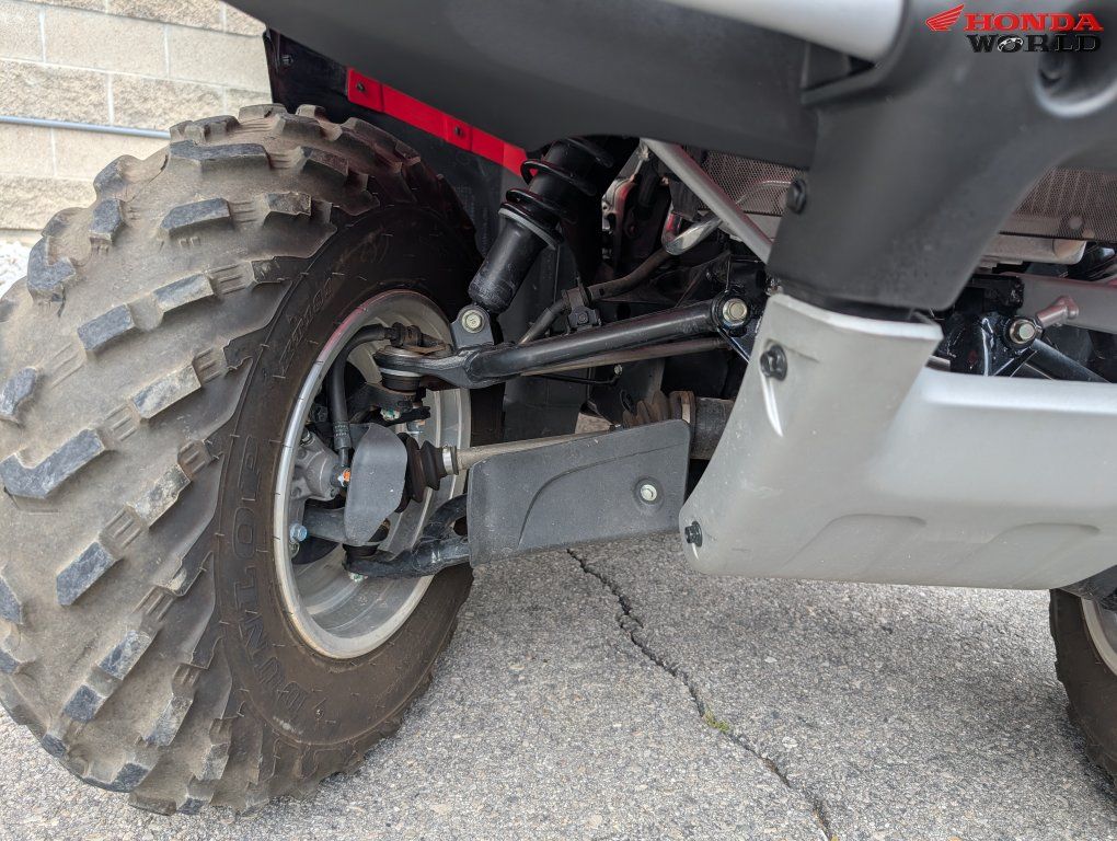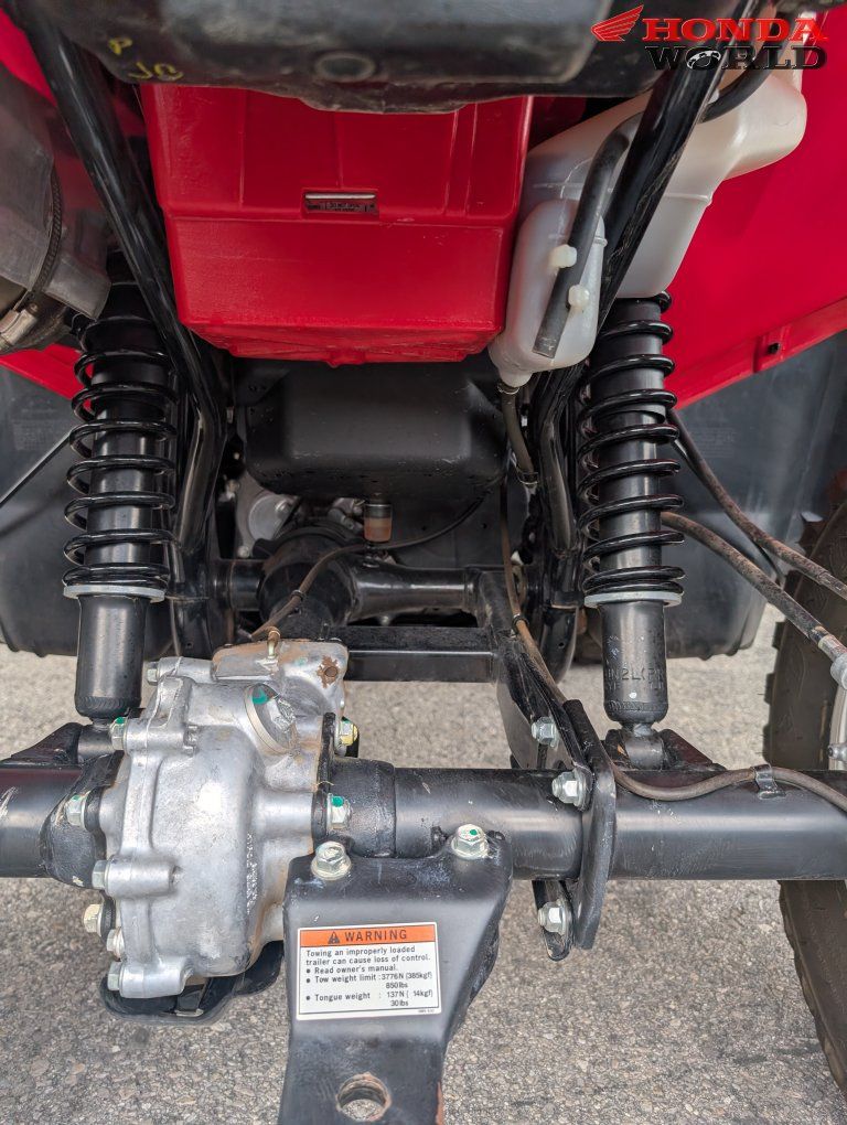 ZelleEngine & Performance 499cc liquid-cooled, single-cylinder 4-stroke engine OHV design with strong low-end torque (great for towing and climbing) 36mm carburetor fuel system Electric start with backup pull start Transmission & Drivetrain Fully automatic Hondamatic transmission (no belt = very durable) Selectable 2WD / 4WD with torque-sensitive front differential Shaft drive (low maintenance, no chain) True engine braking for downhill control Suspension & Ride Independent double-wishbone front suspension (6.7” travel) Rear swingarm with dual shocks (6.7” travel) Smooth ride over rough terrain and good ground tracking Brakes & Tires Front hydraulic disc brakes Rear sealed drum brake (low maintenance) Tires: Front 25x8-12 / Rear 25x10-12 Size & Capacity Length: 83 in | Width: 46.8 in | Height: 46.4 in Seat height: 33.9 in Ground clearance: 7.5 in Weight: ~630 lbs Fuel capacity: ~4.1 gallons Towing capacity: up to 850 lbs