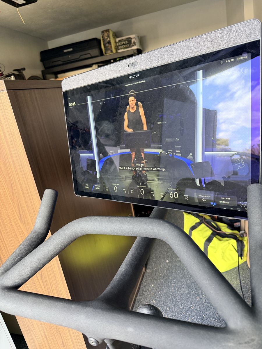 It has the larger screen (23.8”) that swivels all the way around (perfect for off-bike classes like bootcamp and yoga), auto-follow resistance (so you don’t have to adjust it by hand during classes), better & bigger speakers (4, instead of 2), internally routed connection cables, and is overall a heavier, more lush experience on a Peloton.