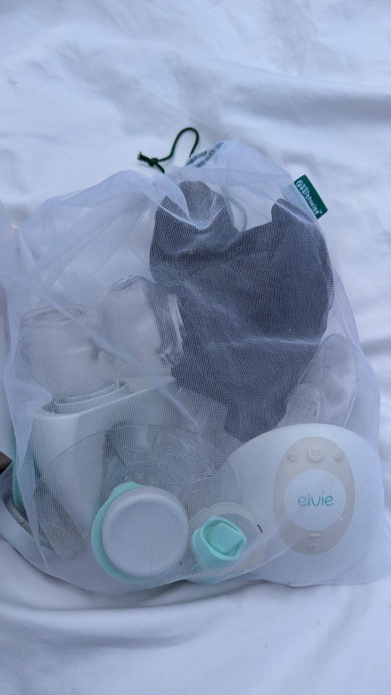 Elvie double wearable breast pump set in good condition. Includes pumps, bottles, shields, valves, and accessories as shown in photos. This is a hands free, wireless pump that fits inside your bra, so you can pump comfortably while moving around. No cords or tubes. Quiet and very convenient for home or on the go. � Babylist +1 Rechargeable and easy to use. Great option for busy moms who want flexibility. Everything pictured is included. Clean and ready to use