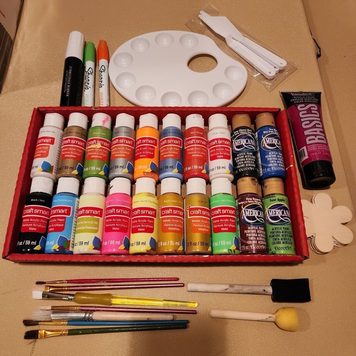 Tons of crafting supplies for sale in 1 bundle. Everything shown in photos, plus more not pictured. Some brand new, some used but still usable. Includes bath bomb molds and supplies, gallon size glue and slime-making supplies, glitter, lots of cardstock, glue gun, paints and brushes, beads and baubles, jat labels, goodie bags, fabric swatches, raffle boxes and tickets and more! Sold as bundle only. Cash only please. Located in Sandy.