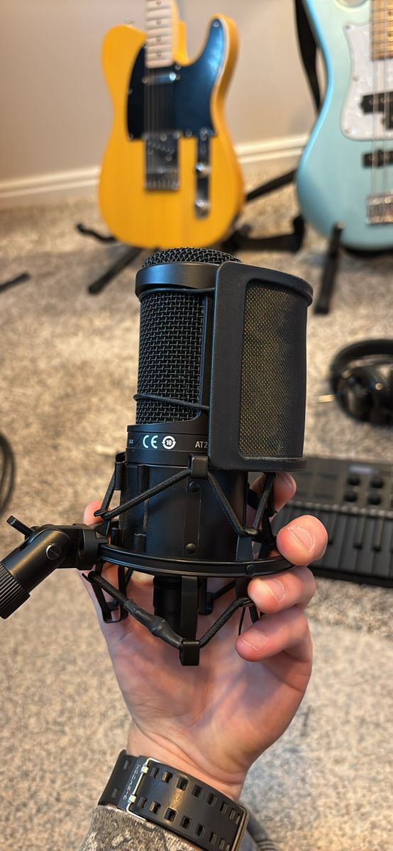 Includes: AT2020 Condenser Microphone Focusrite Scarlett Solo Audio Interface AKAI MPK Mini MIDI Keyboard Shure SRH240A Studio Headphones