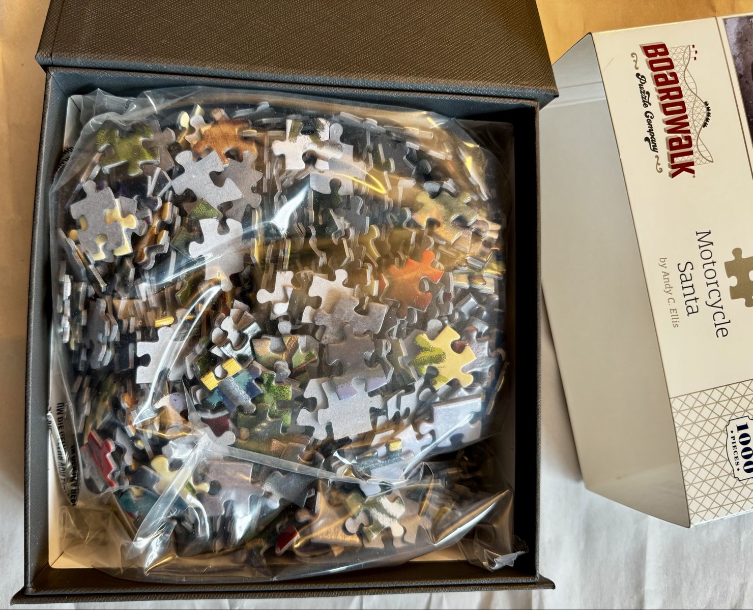 VenmoNEW Boardwalk Puzzle MOTORCYCLE SANTA Christmas 1000 Pieces Holiday Collection. $9.95 🧩