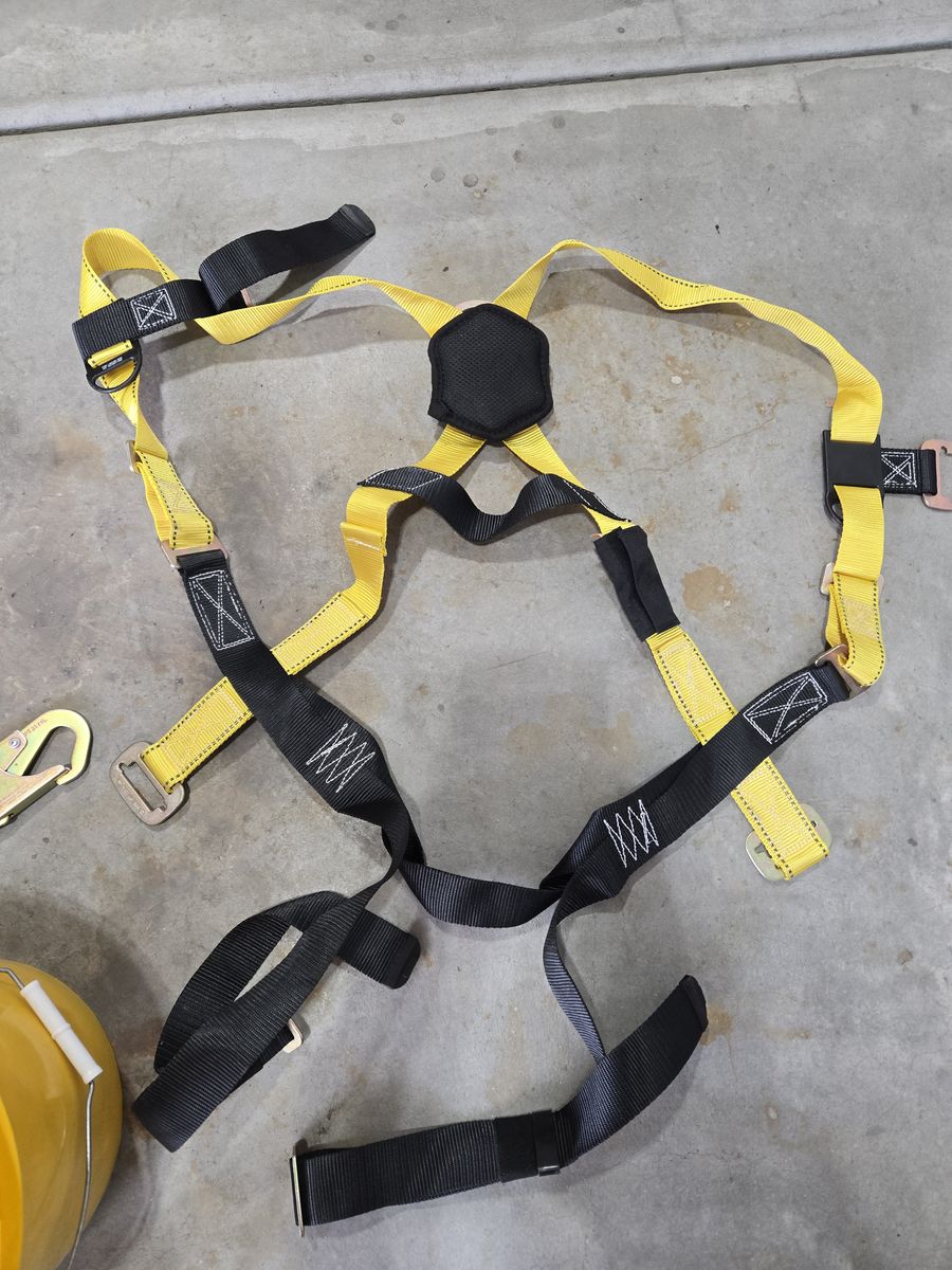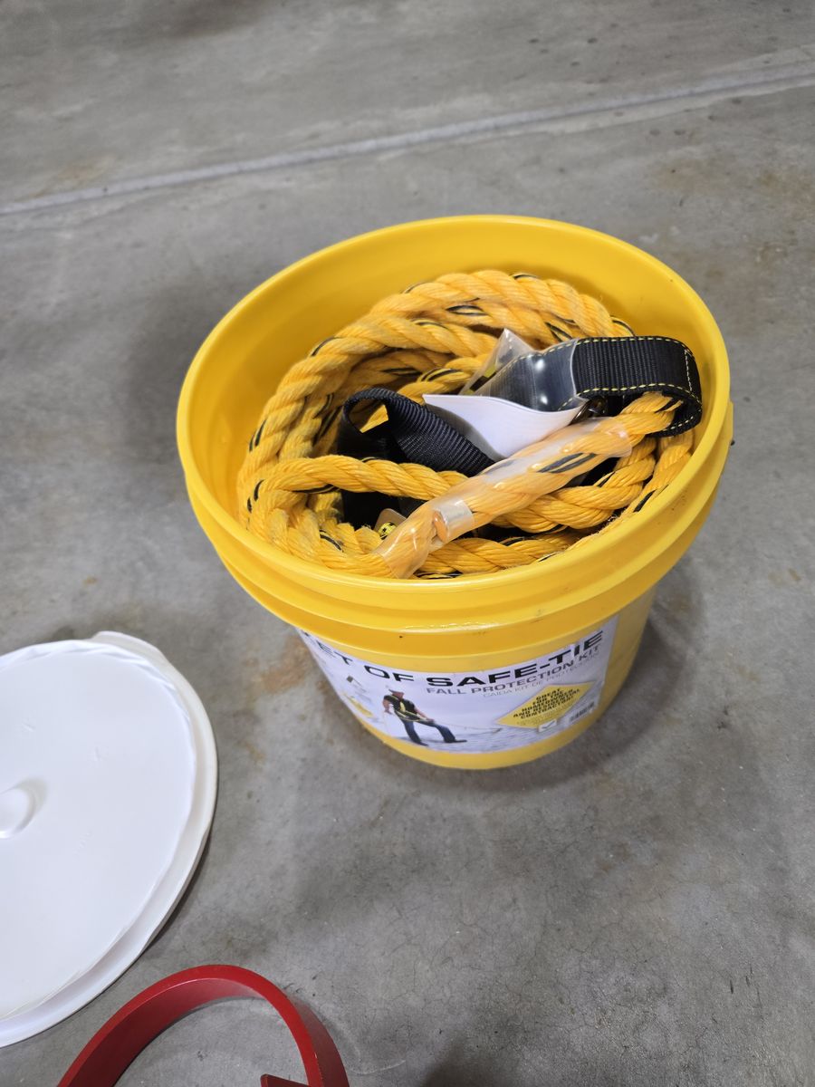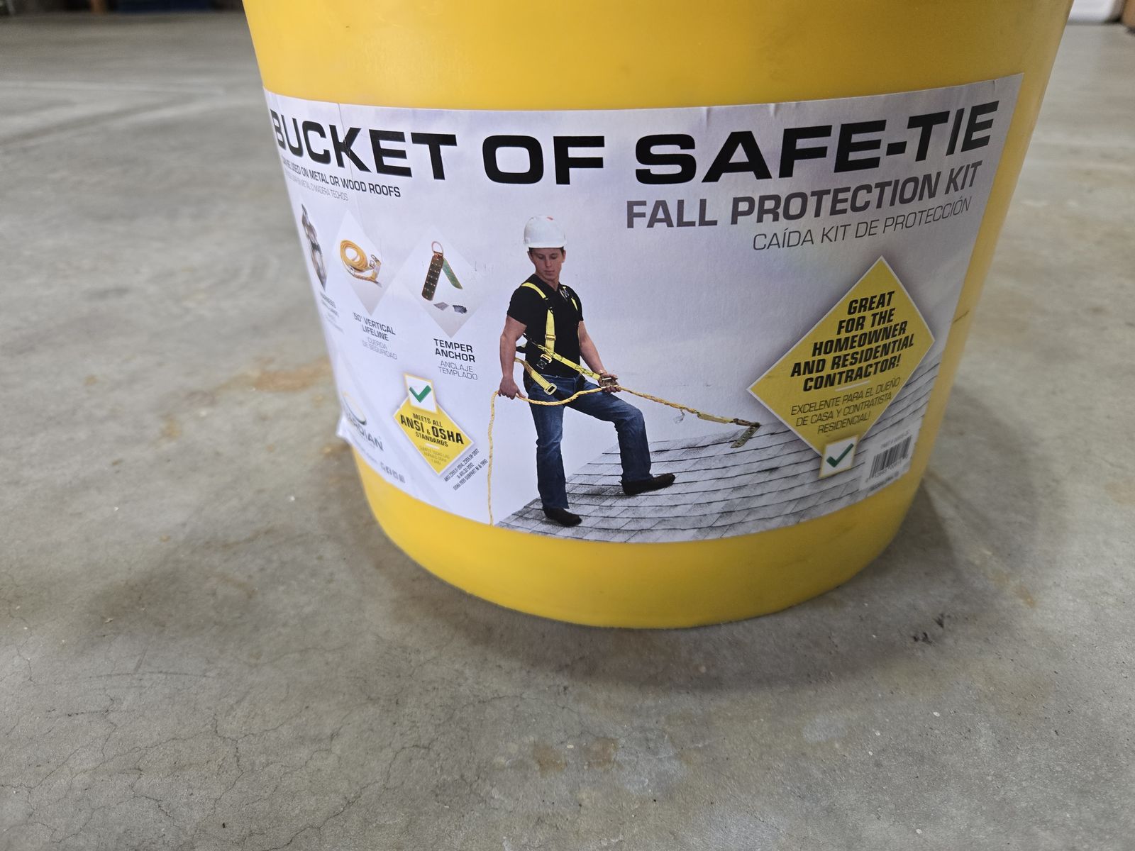 VenmoRooftop safety kit with 5-point full body harness, 50' Vertical Lifeline Assembly, and Temper rooftop anchor.