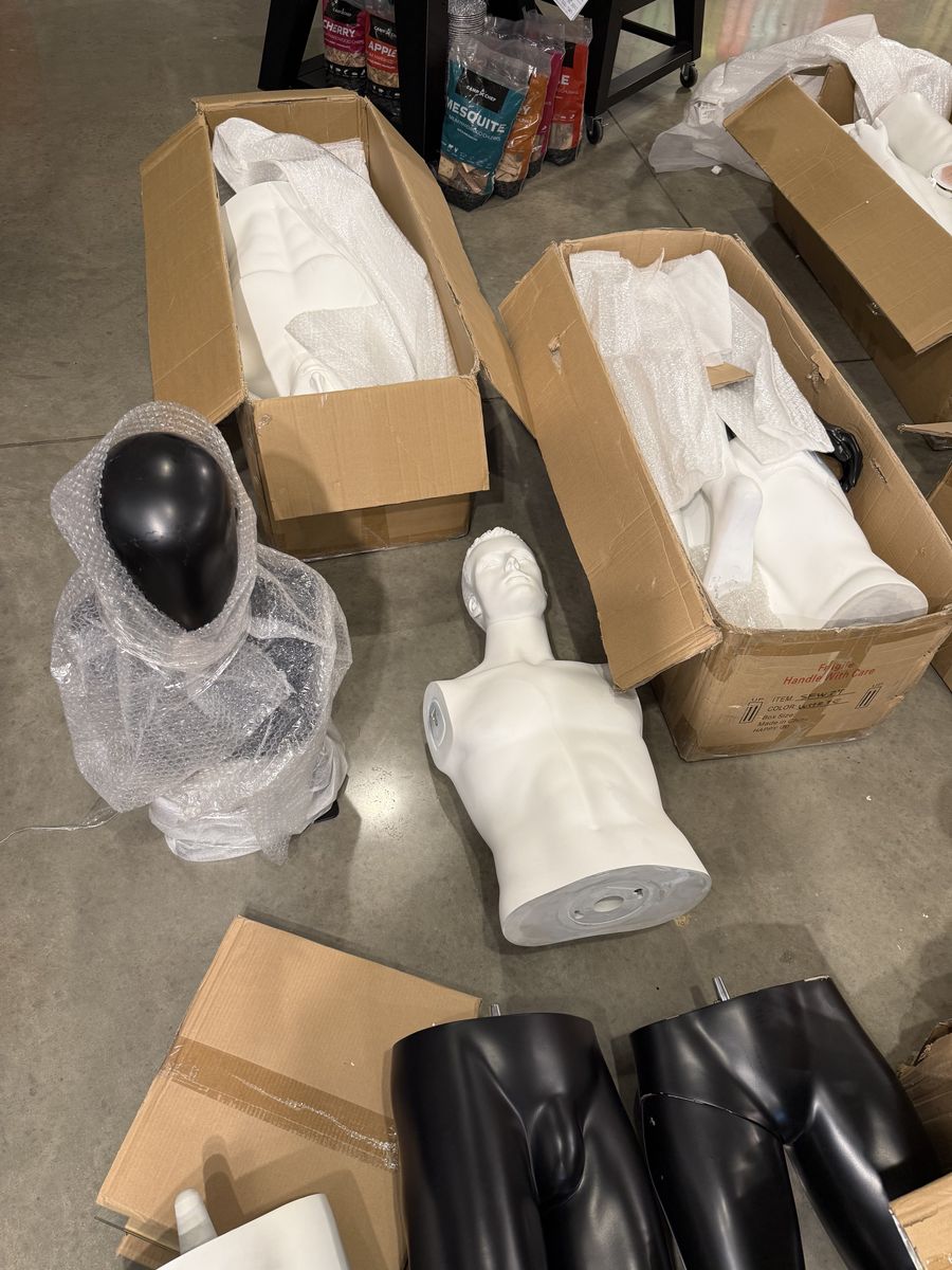 Boxes of different mannequins. Some are full bodies, some are just upper body, some are just heads. There are stands, mannequin shoes, and other items included as well! Once used for retail and no longer need! Pickup in North Salt Lake.