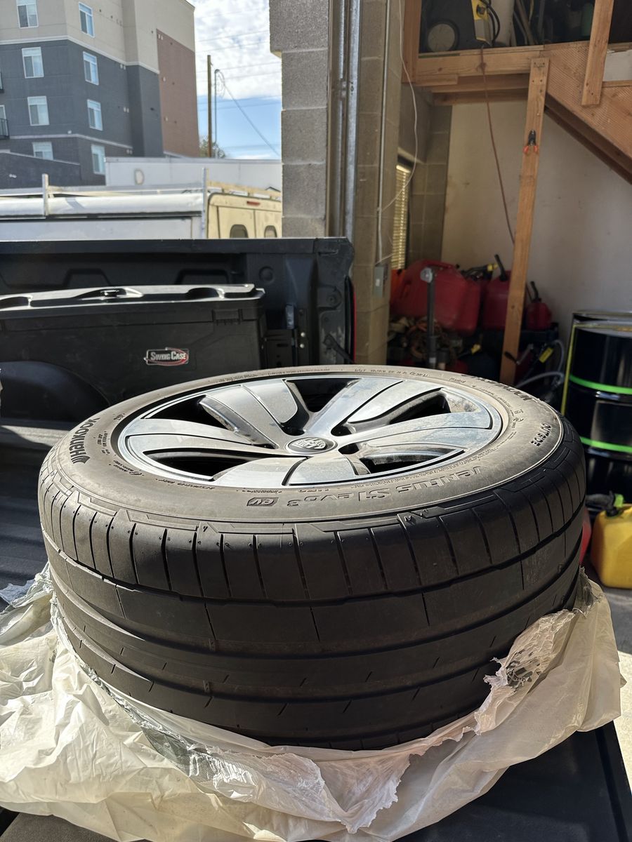 Venmo4 Stock 19” wheels and tires from Porsche Taycan Tires have barely been used. Rims are in perfect condition. 275 45R/19 two tires 225 55R19 two tires