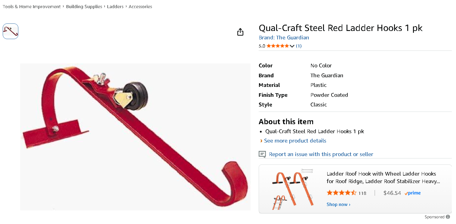 VenmoLadder-Roof hook with wheel ladder hooks for roof ridge.