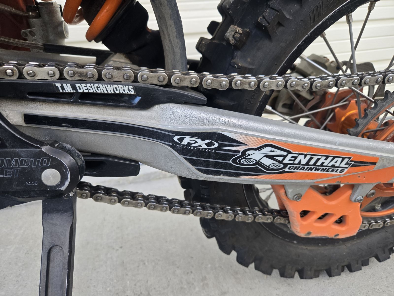 Second owner since 2010, runs great, starts up with electric or kick and has lots of high end aftermarket parts. Comes with a tub full of spare parts (three extra seats, IMS tank with dry break, sprokets, stators, billet clutch cover, BPD radiator guards. 50 Miles on rear tire, new spare air filters and oil filters and spare new and used plastics