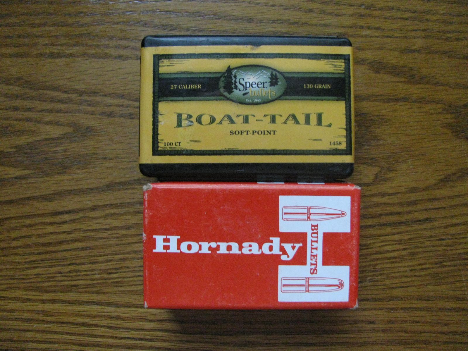 1-box Speer 130 gr. BTSP (100 pcs.) and 1-box Hornady 140 Gr. BTSP (100 pcs.)