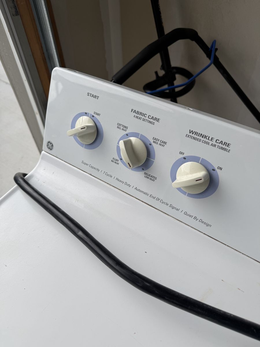 VenmoGE dryer. It runs but it makes a very loud squeaking sound. Someone with the right skill set can get it running quick I’m sure. Heat works fine.