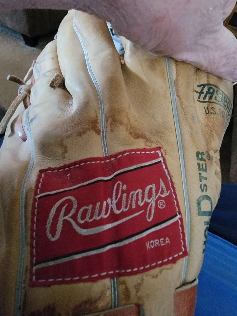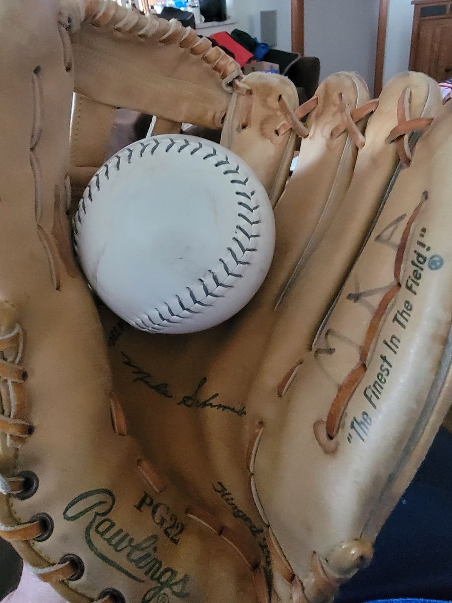 RIGHT HAND SOFTBALL MITT AND BALL. ADULT SIZE.