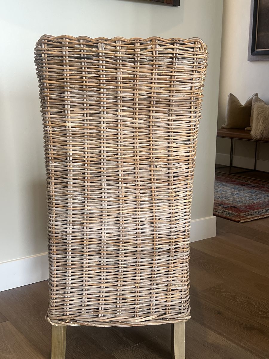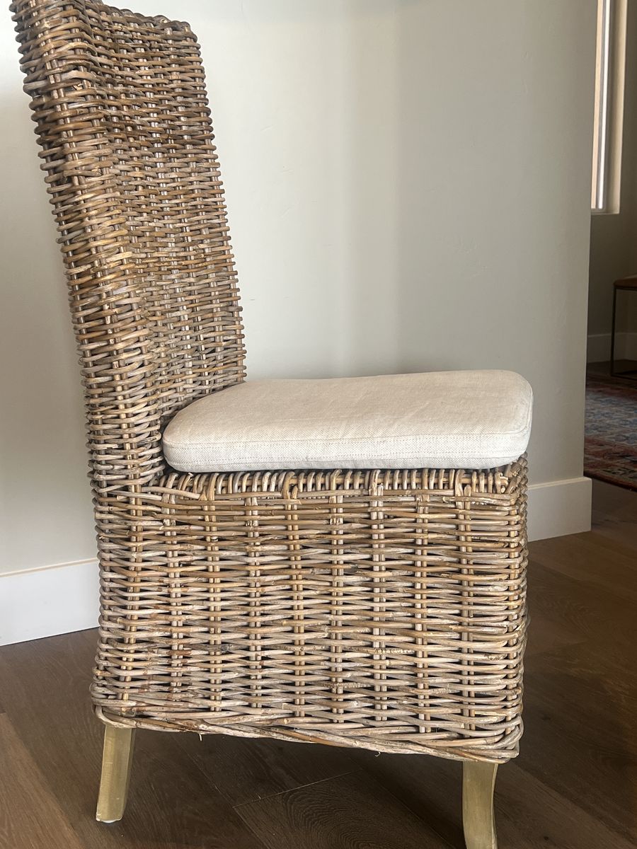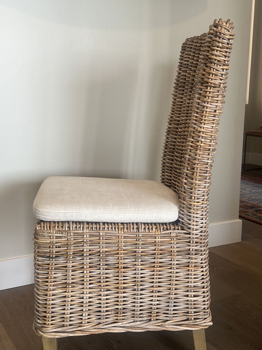 VenmoBeautiful set of four identical chairs with linen covered seat pads. Very good condition, gently used in a model home. Dimensions 41" high; seat 18"wide x 19.5" deep; 24" high from seat to top of chair. Located in St. George