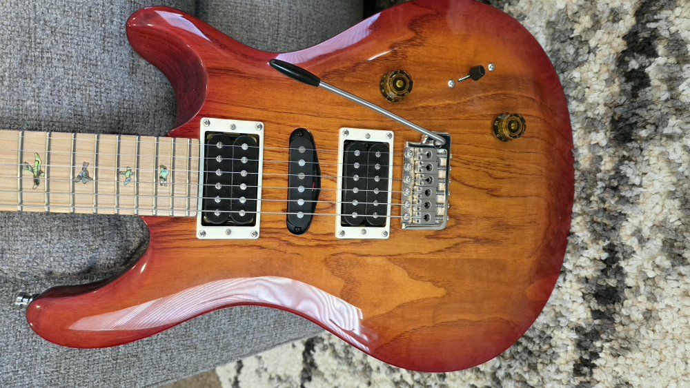 Venmonewer model with 5 position switch allowing more pickup choice. Modded with Prs se locking tuners and plek'd to guitar neck perfection. PRS SE Swamp Ash Special represents an exquisite collision between SE series design and versatility. PRS builds a small run of Swamp Ash Special electric guitars every few years, making them a fun find for collectors and a chance for players to explore sounds that won’t apologize for being adventurous. The SE Swamp Ash Special combines the hearty, soulful character of a swamp ash body with the tonal range of three pickups (two 85/15 “S” humbuckers and one single-coil AS-01) and the heightened expressive power of a PRS Patented tremolo. An unembellished maple neck makes playing the Swamp Ash Special a visceral thrill. The Wide Thin neck carve keeps your fretwork silky smooth, and, on top of being comfortable, the maple fingerboard gives your initial note attack an extra dash of bright, peppery zing. Between classic tonewoods and ample pickup options, guitarists at Sweetwater find the Swamp Ash Special is ready for countless genres — jazz, blues, hard rock, heavy metal, pop, and more. How does PRS do it? Find out with an SE Swamp Ash Special electric guitar of your own. The PRS SE Swamp Ash Special pairs nimble pickup selections with a body carved from one of the most nimble tonewoods: swamp ash. Swamp ash grows only near the banks of the Mississippi River, the same central and southern heartlands that birthed the blues and rock ’n’ roll. Because its roots grow directly in water, it is the lightest species of ash available, with incredible balance, resonance, and dynamic response. When played politely, swamp ash strikes an ideal balance between brightness and girth. Played aggressively at loud volumes or with distortion, swamp ash reveals a gnarlier side characterized by midrange bite and snarl that cuts through any mix. One of the finest tonewoods known to humankind, swamp ash is becoming harder to come by — thankfully, PRS’s stockpiles have kept this tonewood icon available to all. PRS-designed pickups Enticing pickup trios have been a hallmark of the Swamp Ash Special over the years. This SE version carries on this tradition with two potent 85/15 “S” humbuckers and a single-coil AS-01, a combination that packs enough range for hot Nashville twang, mellow jazz, driven hard rock, and more. The 85/15 “S” humbuckers are retooled versions of Paul Reed Smith’s original pickups. You can expect sweet, vintage-tinged harmonics and chunky humbucker warmth, but with output and inflection optimized for modern gear and tastes. The AS-01 pickup in the middle position offers a brighter, more crisp alternative to humbuckers and is a natural fit for classic styles, such as country rock or the blues. The AS-01 blends a conventional alnico magnet with steel alloy, resulting in a fuller single-coil body that responds well to player dynamics and volume knob placement. Moreover, a push-pull pot lets players get single-coil-style tones from the 85/15 “S” humbuckers, bringing the total number of pickup voices onboard to six. With this trio of PRS-designed pickups, no tone is off-limits. PRICING NEW: $929 plus $105 tuners and Plek'd $299 plus $14.98 strings total with tax $1445.73 Comes with Prs gigbag and all case candy.