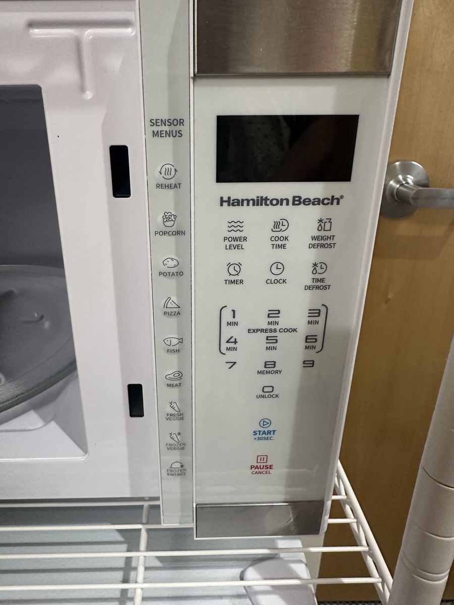 VenmoWhite and silver hamilton beach countertop microwave. Originally $90. Used for 9 months, Great for a college dorm.