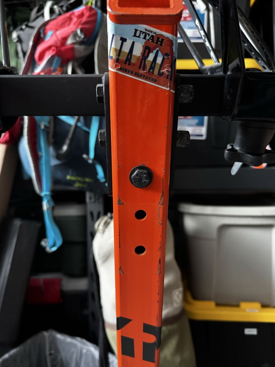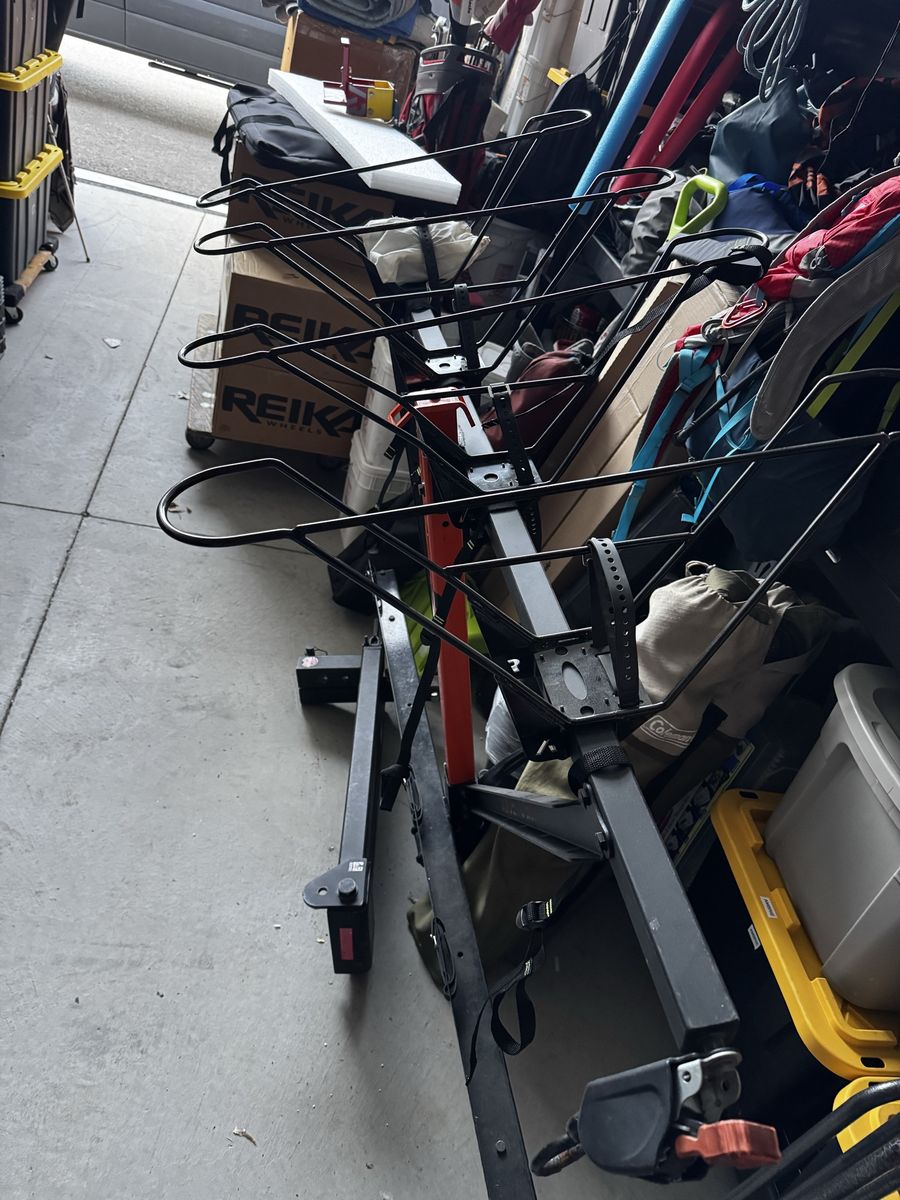 Our rack is gently used, greatly loved, and in excellent condition. It’s taken us from NICA races to secret mountain trails and everywhere in between; however, we’ve eliminated a number of bikes and downsized our accommodations, so we no longer have the space or need the carrying capacity this awesome rack offers. We initially bought the GPR - 4 Pack, then upgraded it to the Superior 45ER with five baskets, a dual hitch stabilizer system to eliminates any play in the receiver hitch, (which every rack we’ve ever had has suffered from), retractable strap ratcheting tie-downs to mitigate top-bar sway and movement, and we also added the Worx Bike Stand attachment to suspend bikes for easy cleaning or mobile maintenance while on the road. It features an adjustable front plate to match the angle of the bike’s top tube, but ours rarely got used and is in ‘like new’ condition!