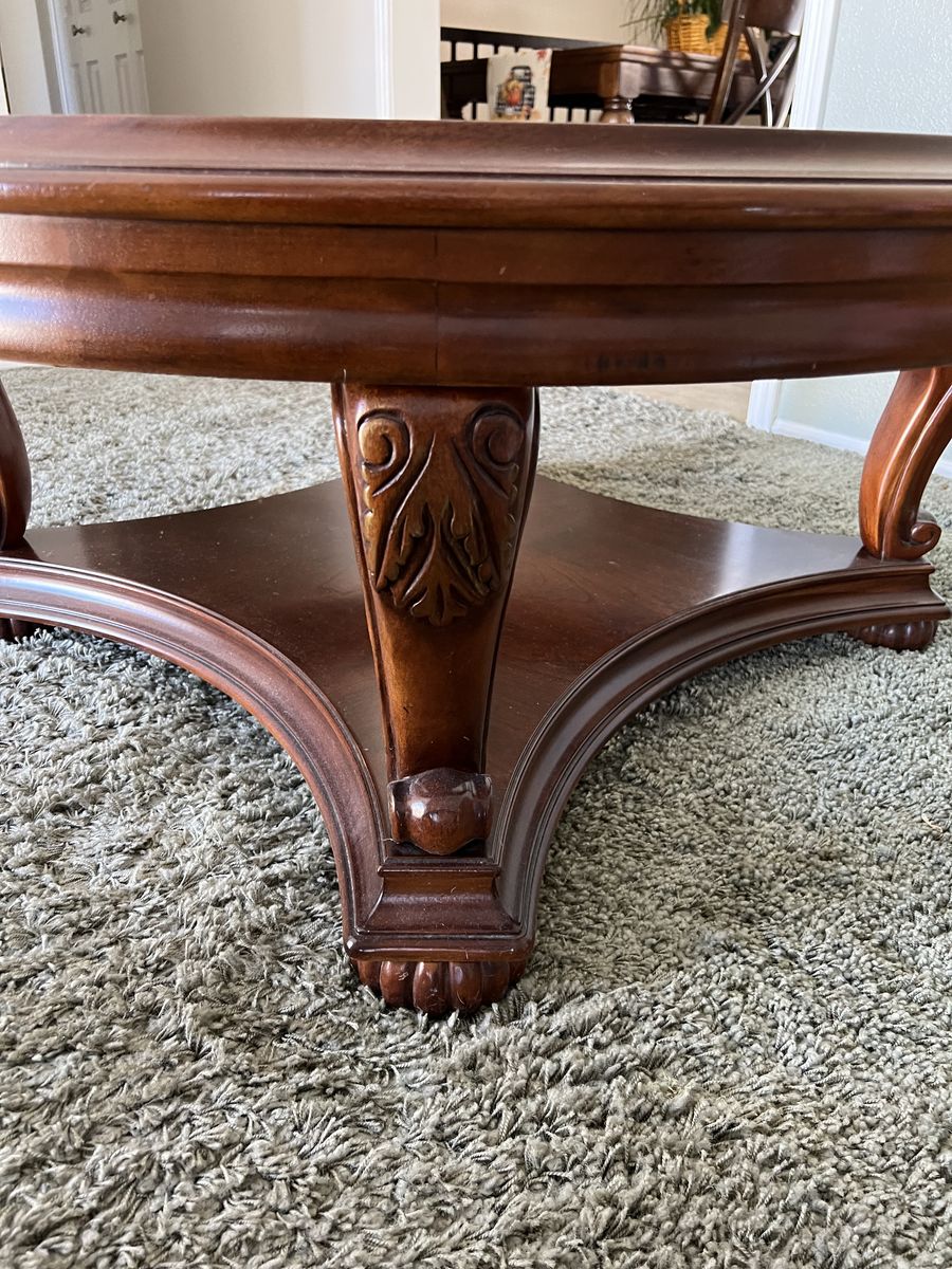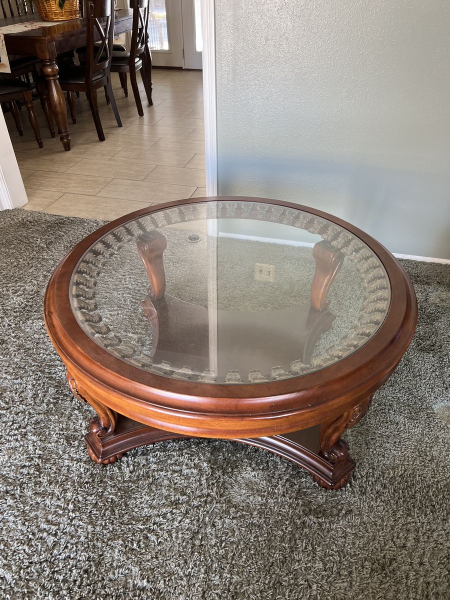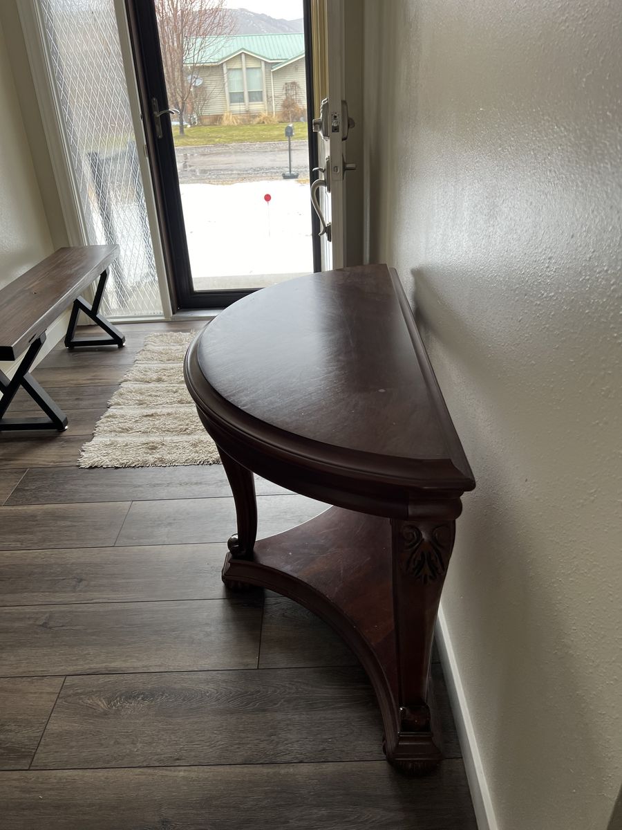 2 coffee tables ,1 Entry table, and glass top coffee table. All in good condition an built very well.
