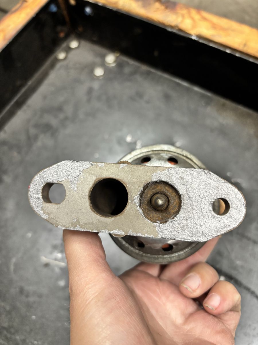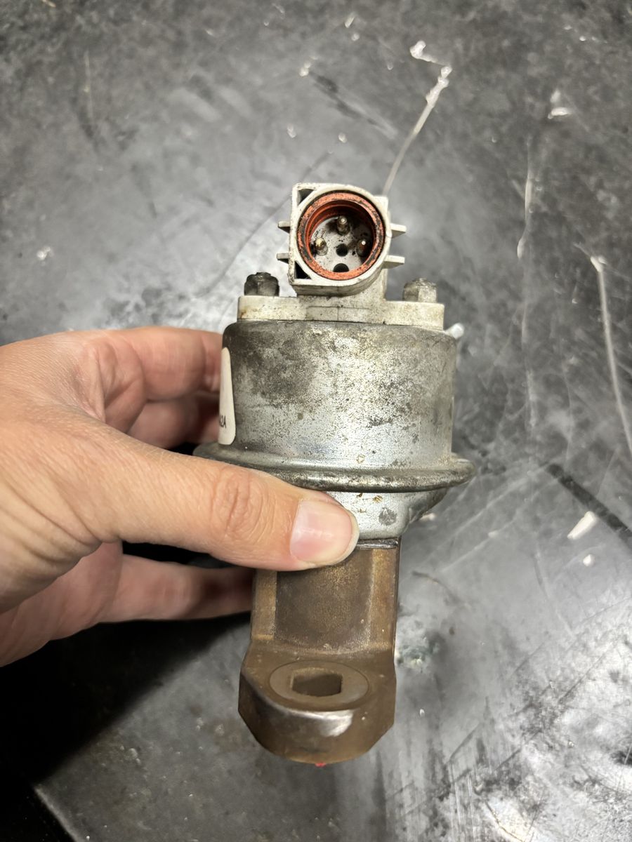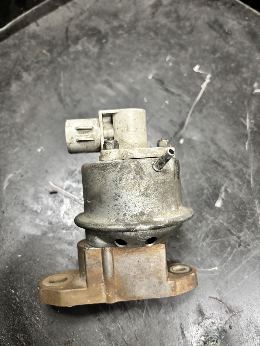ZelleOEM EGR spacer plate and valve assembly. This sits between the throttle body and the upper intake manifold. Essential for passing smog or maintaining factory idle/emissions settings. Includes: Aluminum spacer plate and the EGR vacuum valve. Condition: Passages are clear of heavy carbon buildup. Diaphragm on the valve holds vacuum. Compatibility: 1986–1993 Mustang 5.0L.