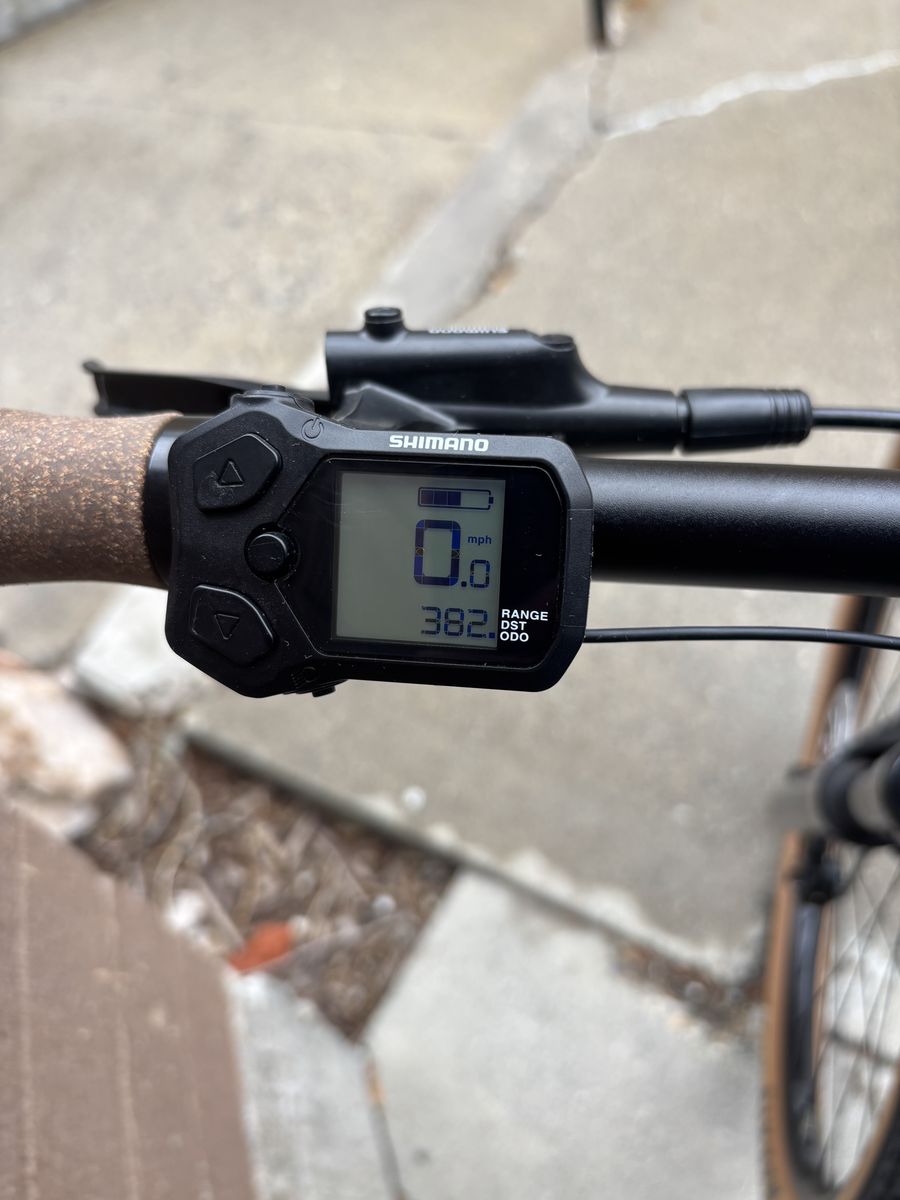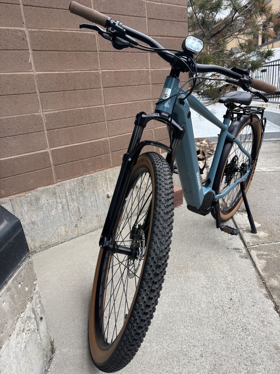 Great communter bike, comfortable on gravel roads and light trails. Shimano 630Wh battery, can easily hit 60 miles per charge. Pictured is a medium frame but also have a large available.