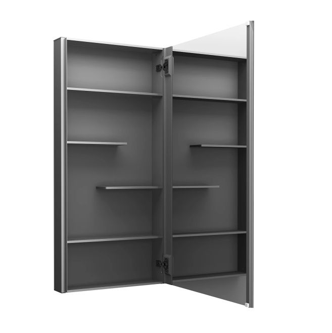 Installation is surface-mount, meaning it mounts directly onto the wall without requiring a recessed opening cut into the drywall. The aluminum construction keeps the cabinet lightweight yet durable, and it arrives fully assembled for straightforward installation.