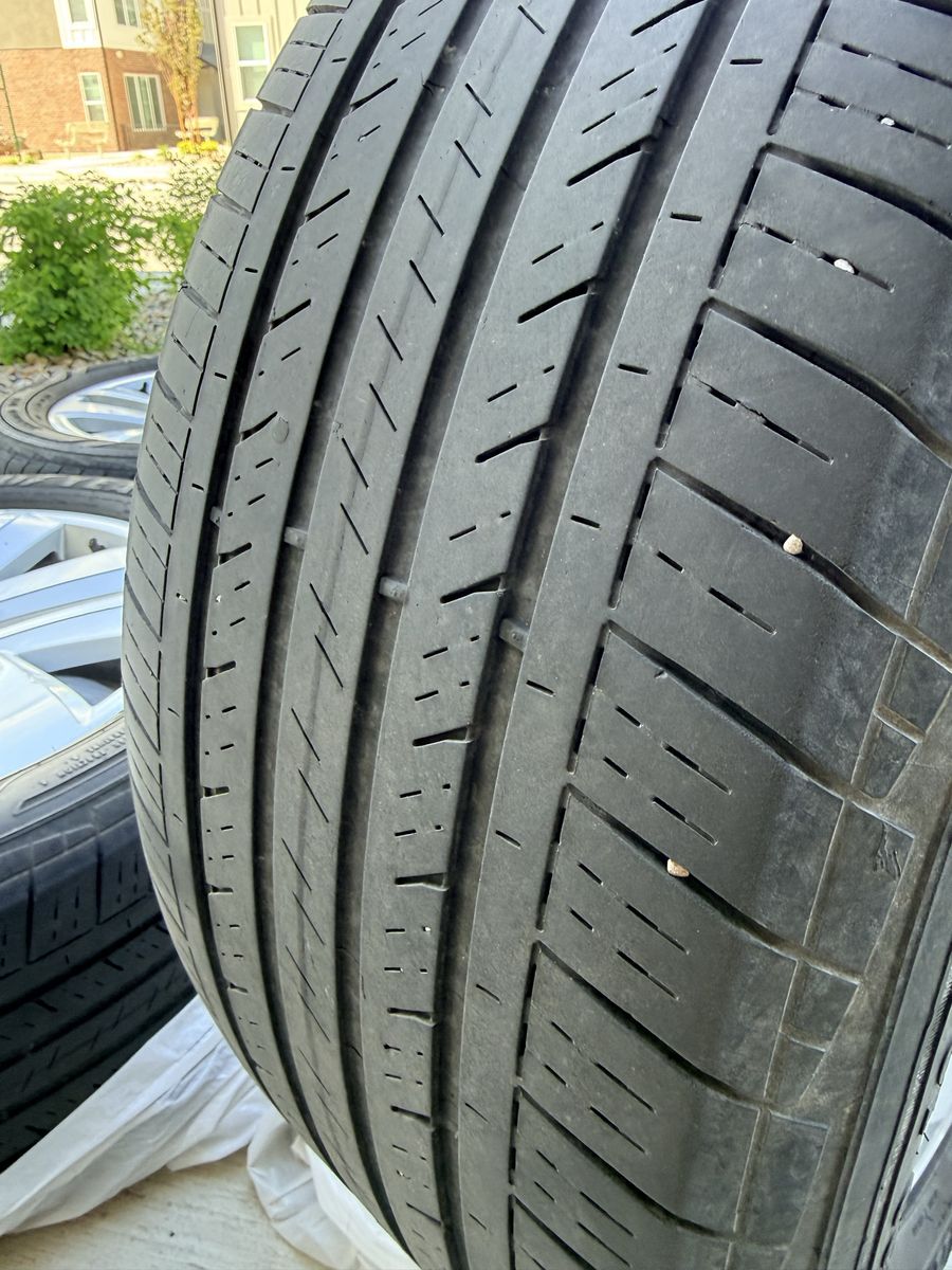 Tires: Good Year Assurance, 255/50R20. About 3/12 tread depth left.