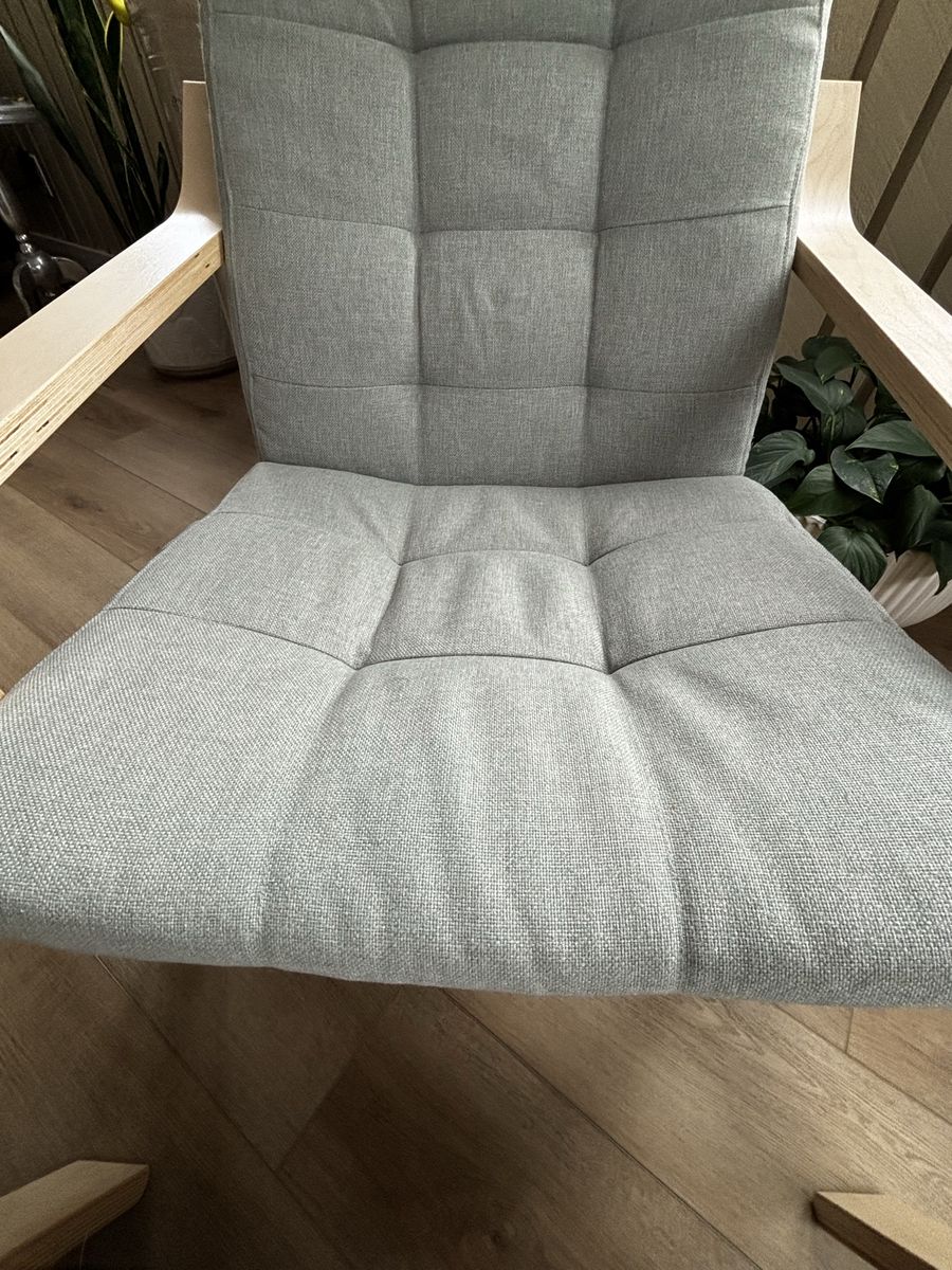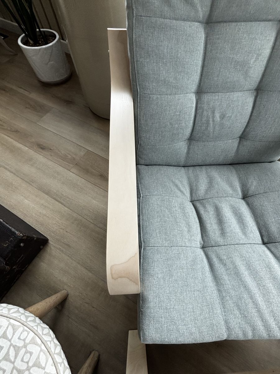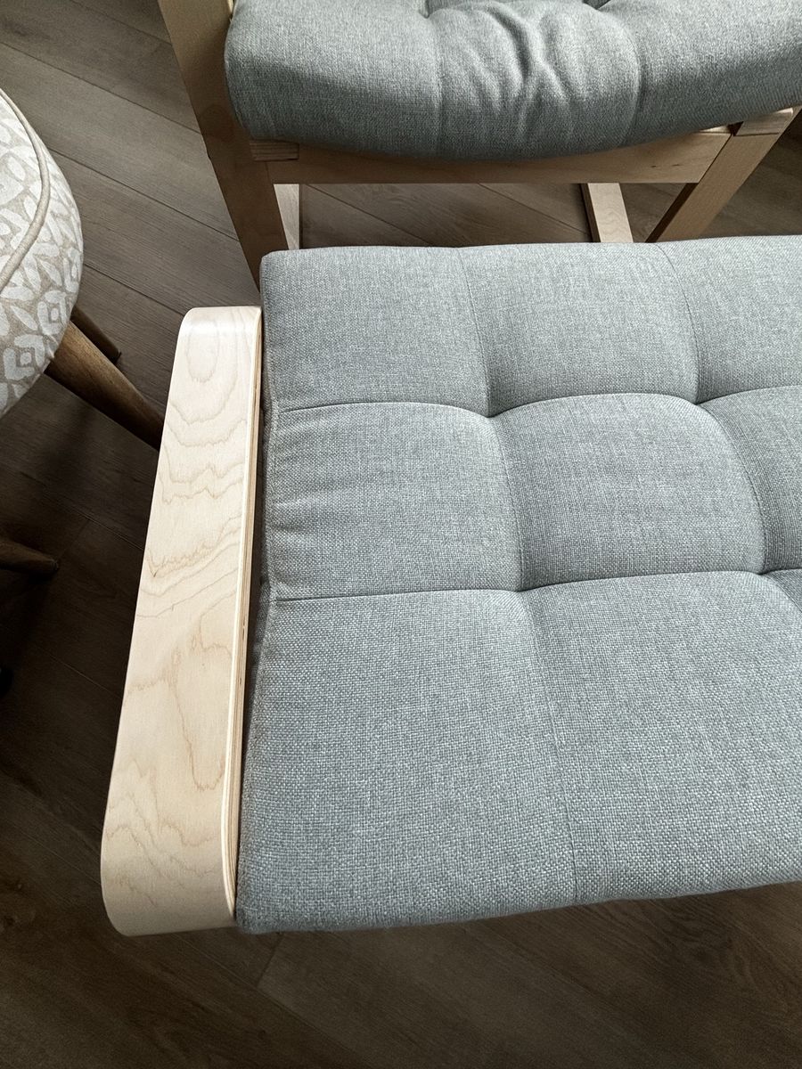 ZelleI bought this in January 2025. The chair has the premium cushions. It sat in a bedroom and was rarely used. It’s very comfortable and attractive, I just don’t have room for it anymore. There are no stains, no dings in the wood, it looks brand new. Price firm. I’m not desperate to sell it. You can buy it brand new at Ikea for $319, plus tax and assemble it yourself… or you can buy it from me fully assembled with NO Tax for $200.