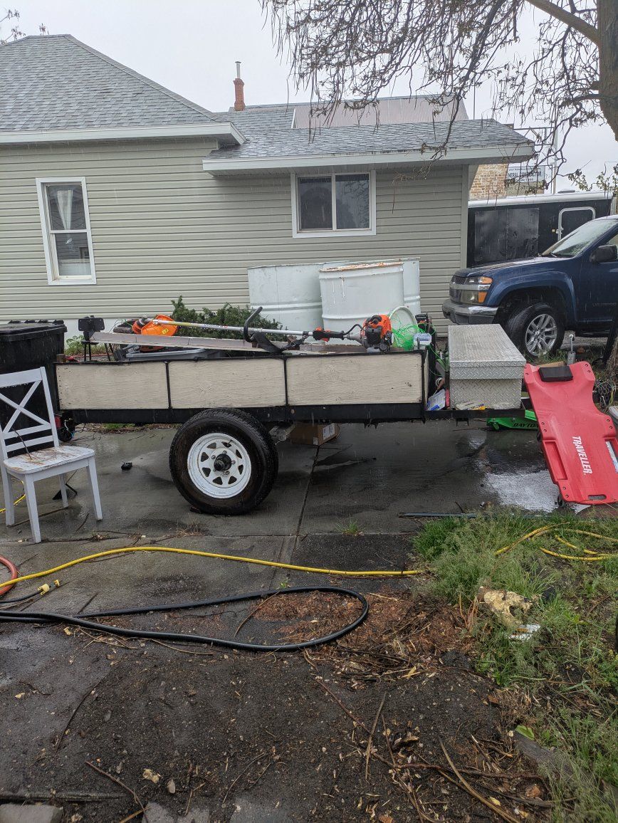 6x10 utility trailer, new tires, new lights, new winch ramps for $700