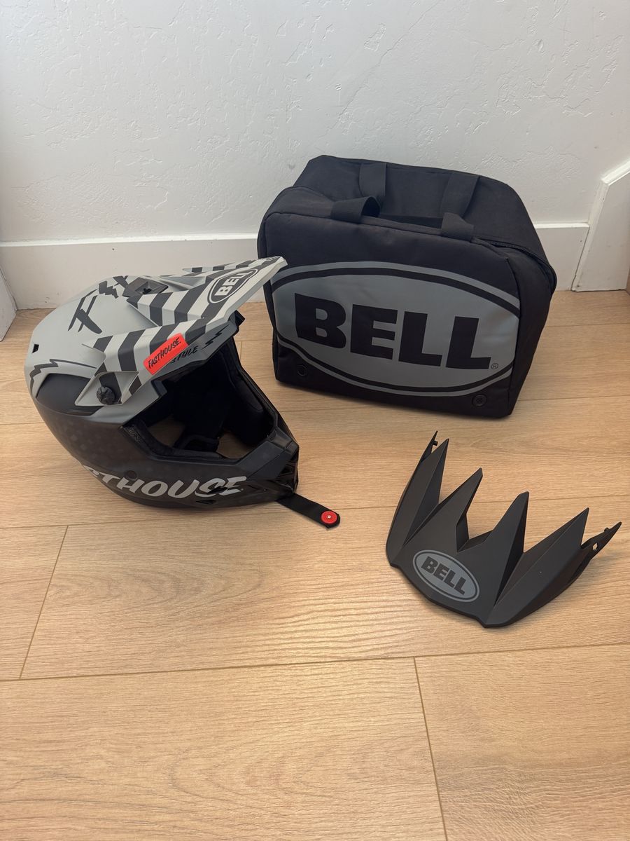 For sale is my Bell Full-10 Spherical helmet Fasthouse edition, size Medium. Helmet was worn for 1-2 months of riding, and is in great condition. Never wrecked, only blemishes I could find are one the left side of the chin bar (pictured). Helmet has mips, extra visor, extra cheek pads, and a travel bag.
