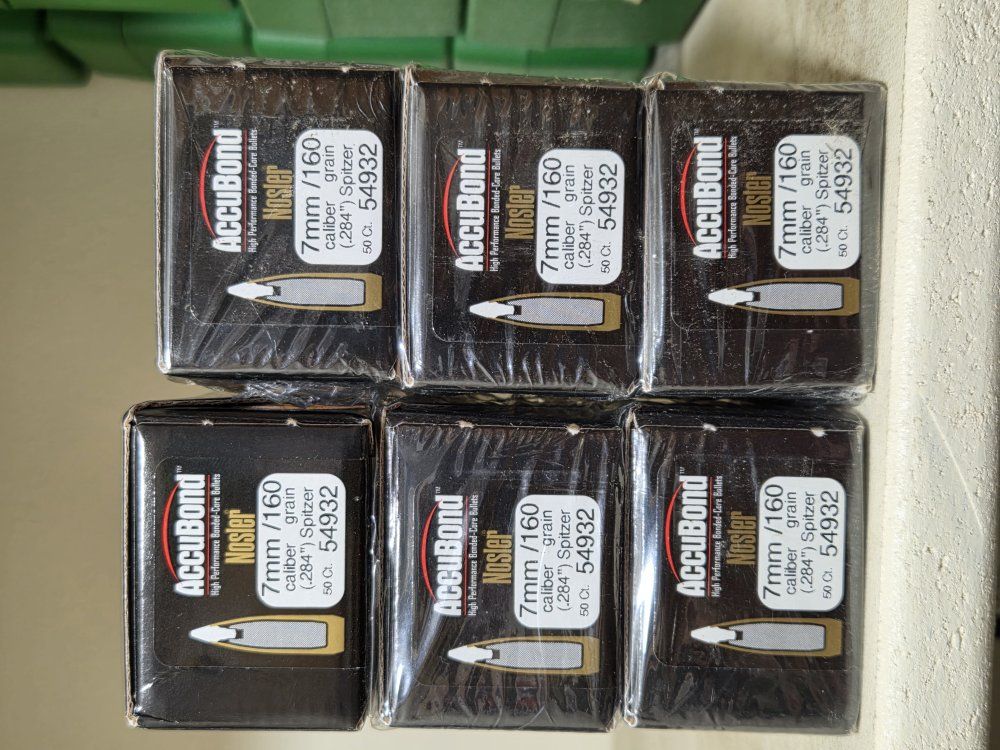 PayPal7mm 160gr Accubonds still in plastic. switched to a different bullet in my 28 Nosler. 6 boxes available $50.00 per box box