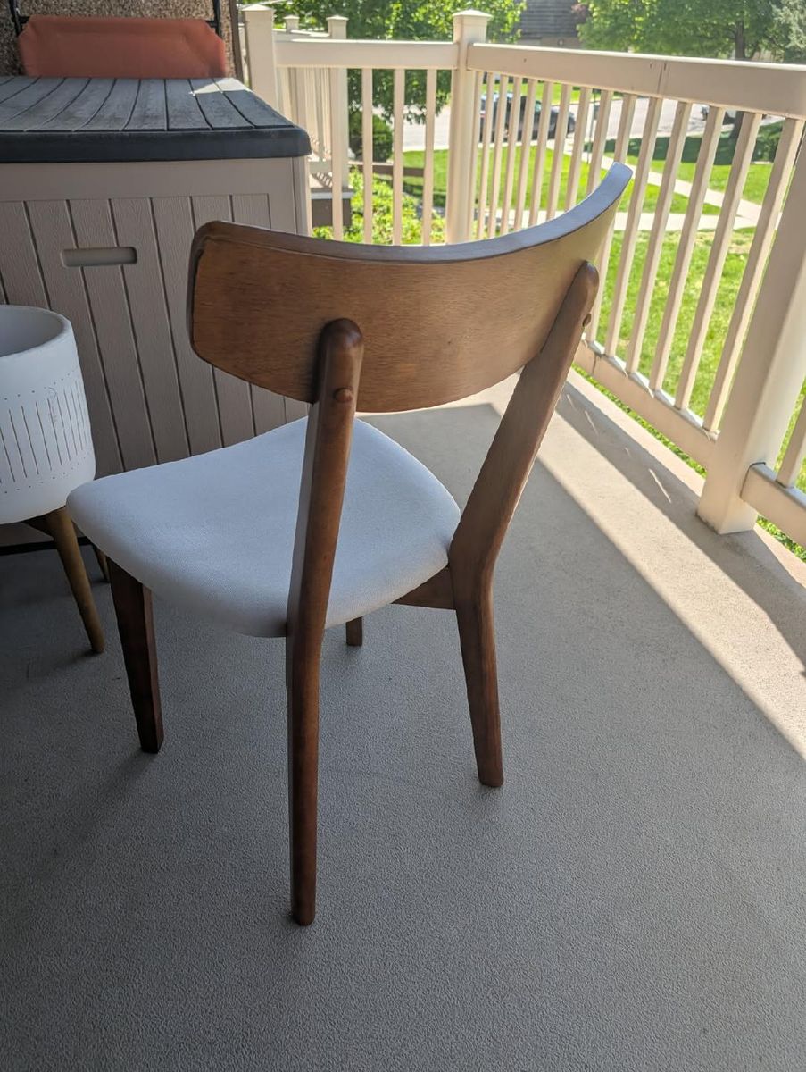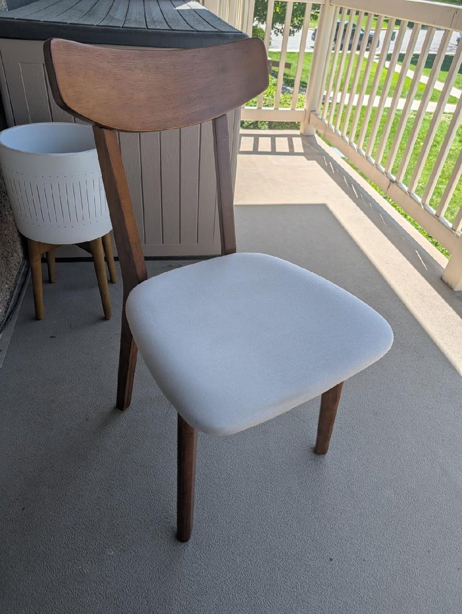 Solid walnut wood and upholstered seat.