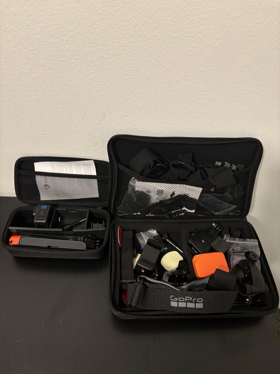 Selling a GoPro HERO12 Black in great condition, works perfectly. Includes 2 batterys and some accessories also It comes with a black silicone protective sleeve and a 2 zippered hardshell carrying case if you have any question about the accessories reach me in my DMs.