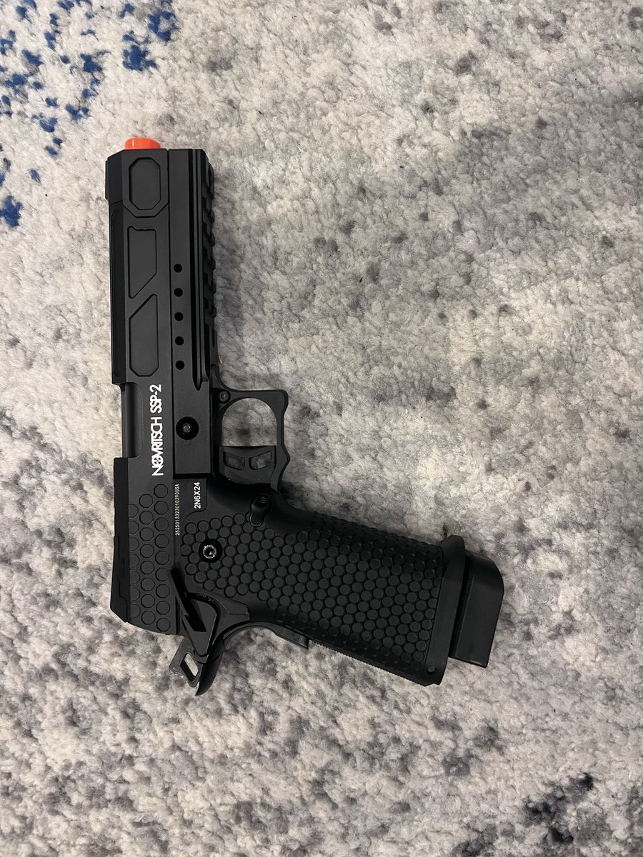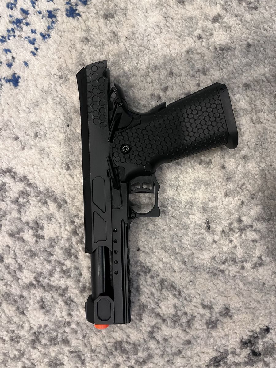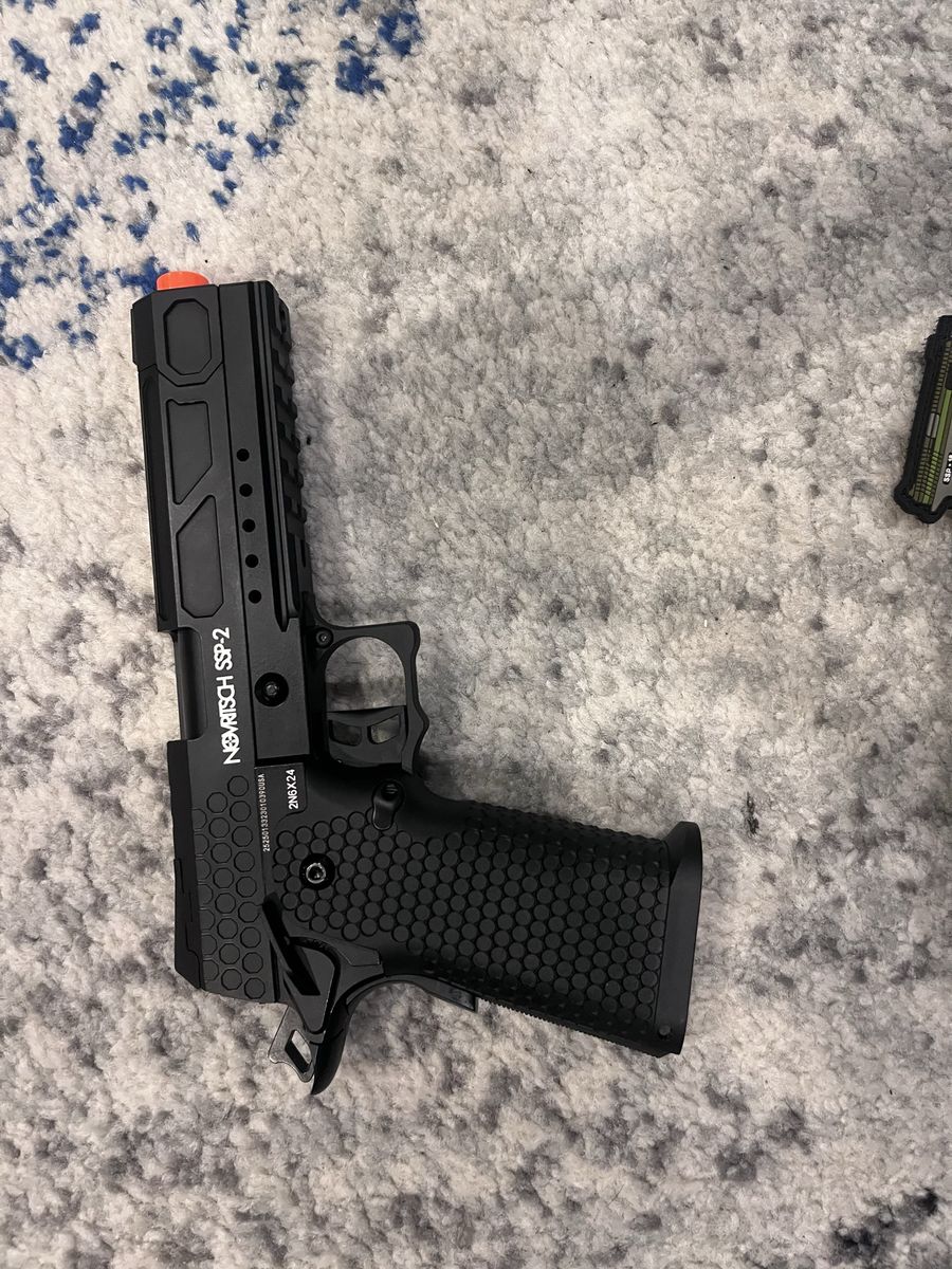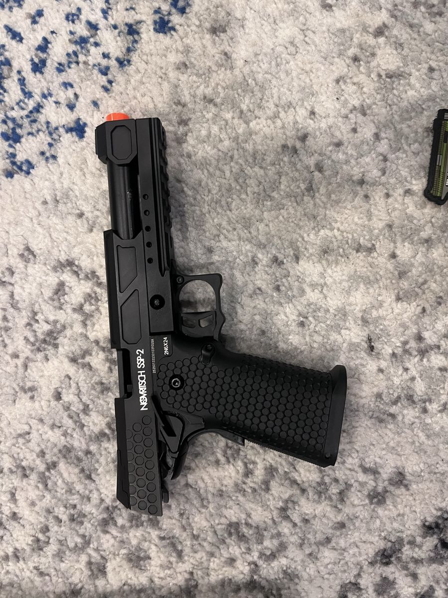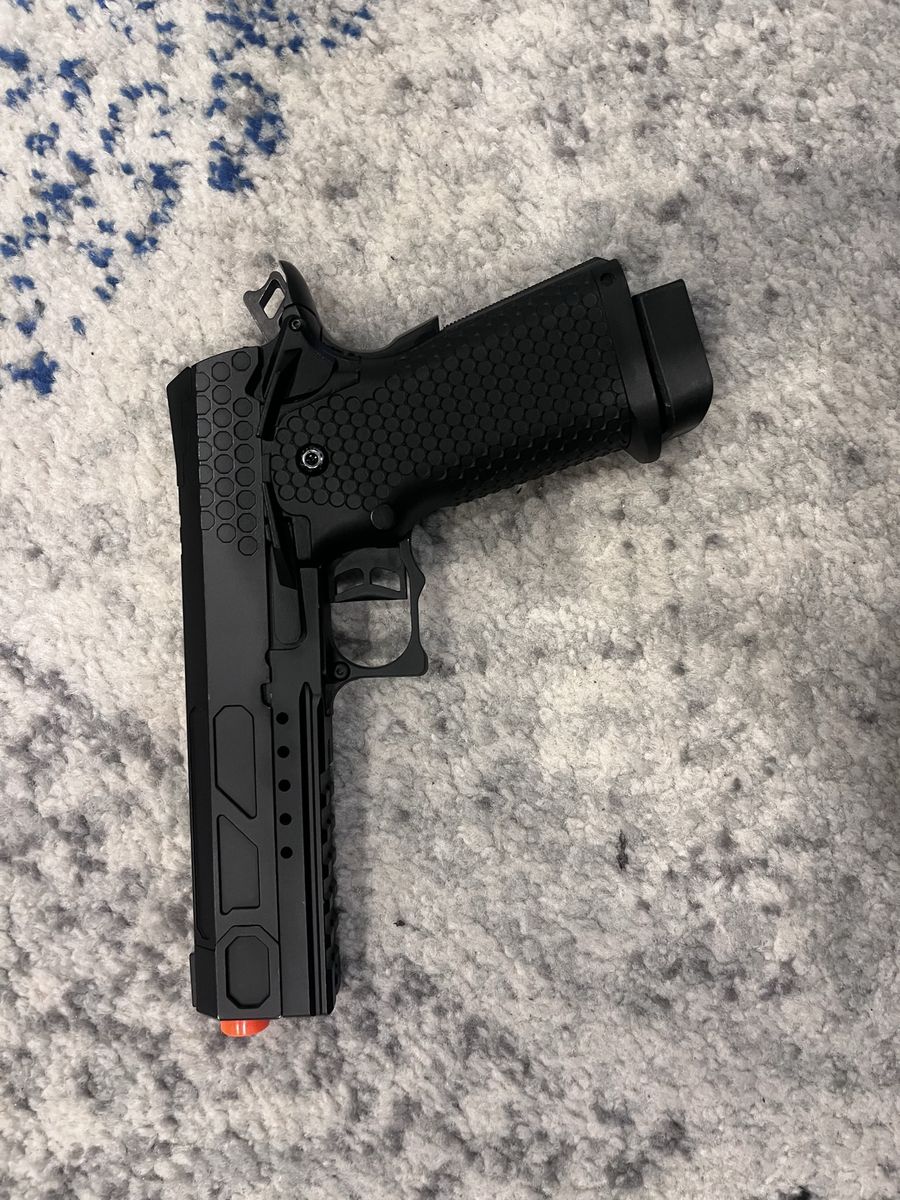ApplePayGas blowback pistol about 330 fps according to website. Only about 10 mags have been used on it. Each mag holds 30 bbs. It comes with about 1/2-3/4 full canister of SUPER HIGH pressure gas. so only recommended using in COLD tempature. And comes with a pretty sick patch. No bbs included brand new price is 170$