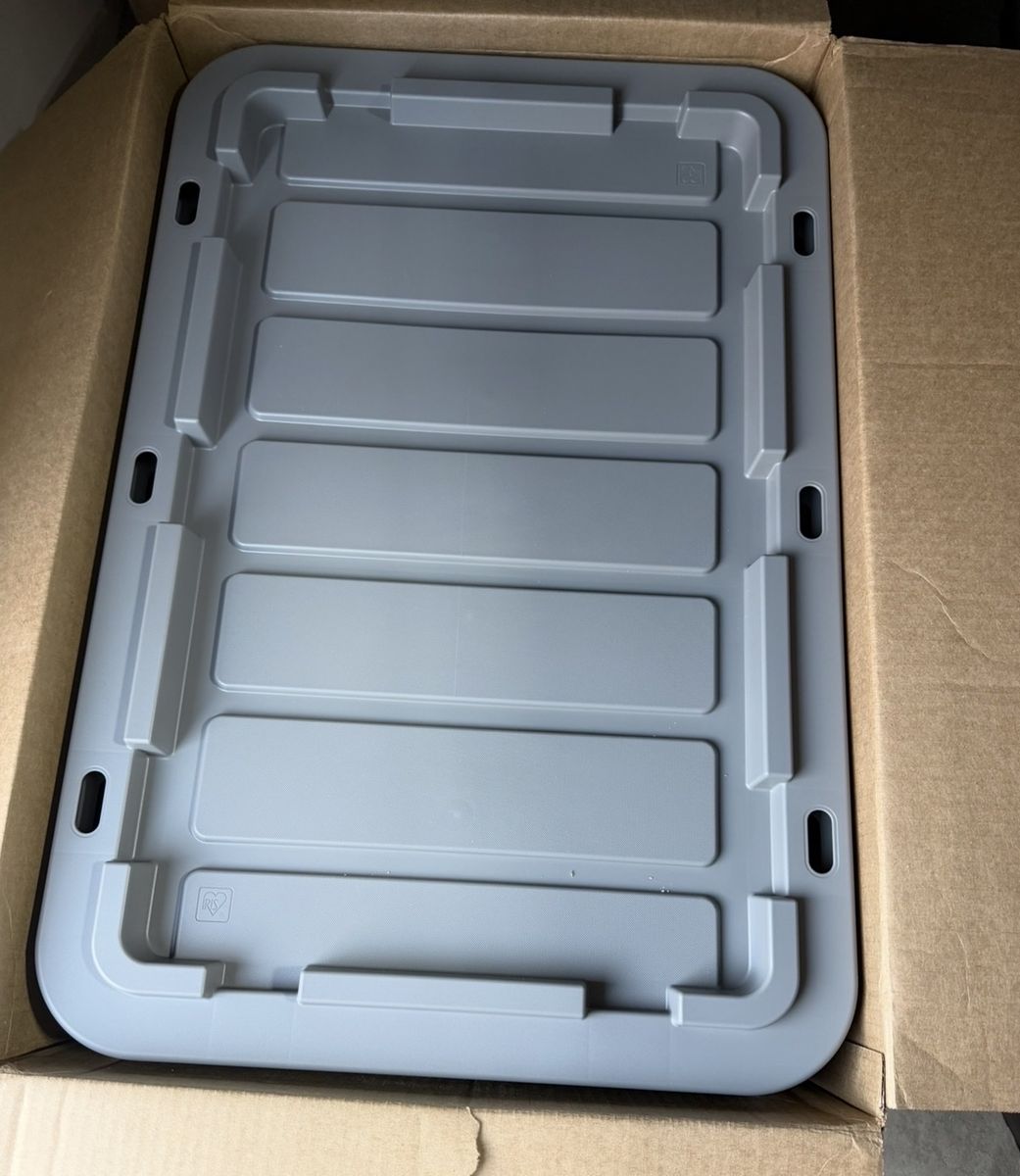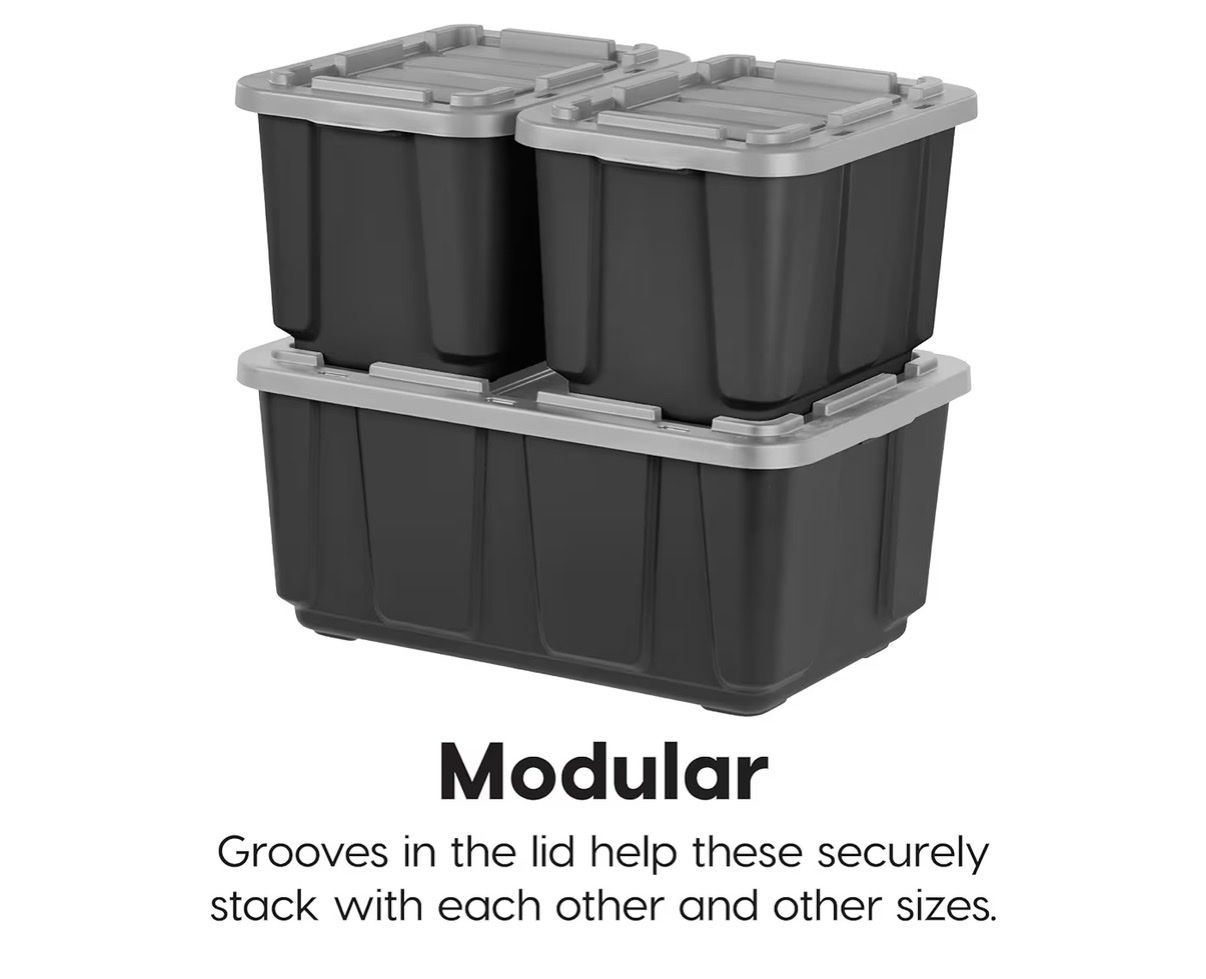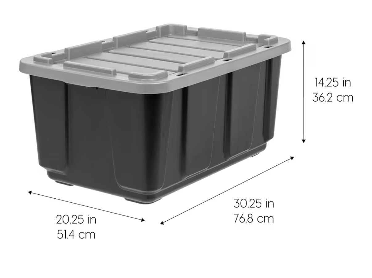 IRIS USA 4-Pack 27 Gallon Storage Bins with Lids |Made in USA| Heavy Duty Plastic Tote Containers for Truckbed Tool Box Organization, Large - Gray