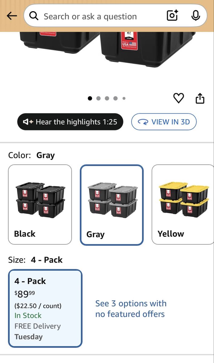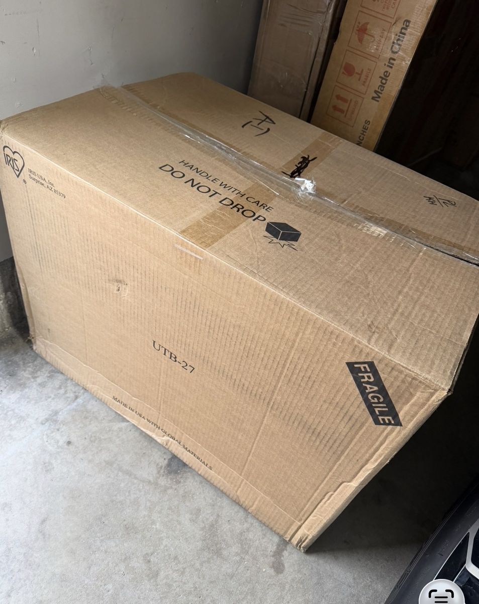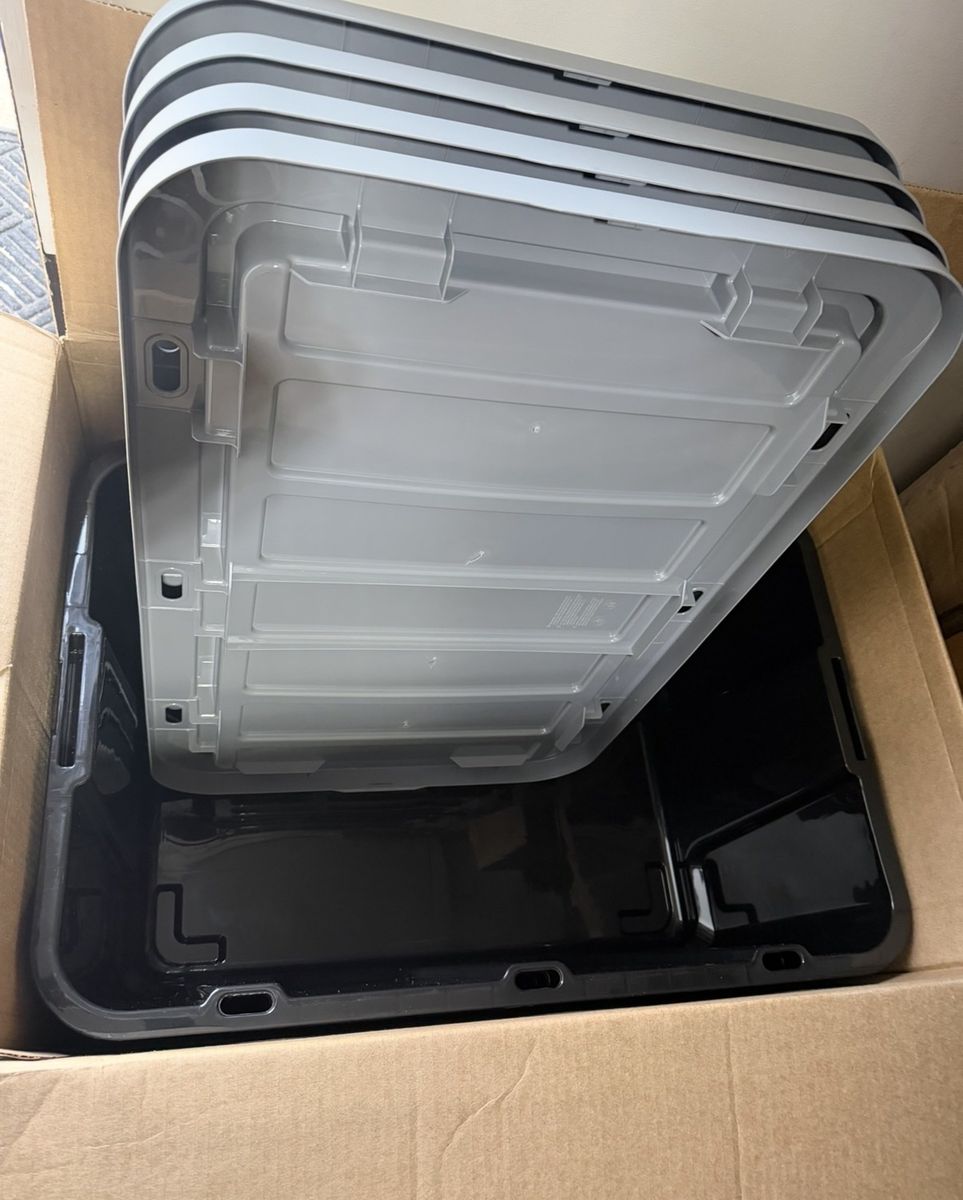 IRIS USA 4-Pack 27 Gallon Storage Bins with Lids |Made in USA| Heavy Duty Plastic Tote Containers for Truckbed Tool Box Organization, Large - Gray