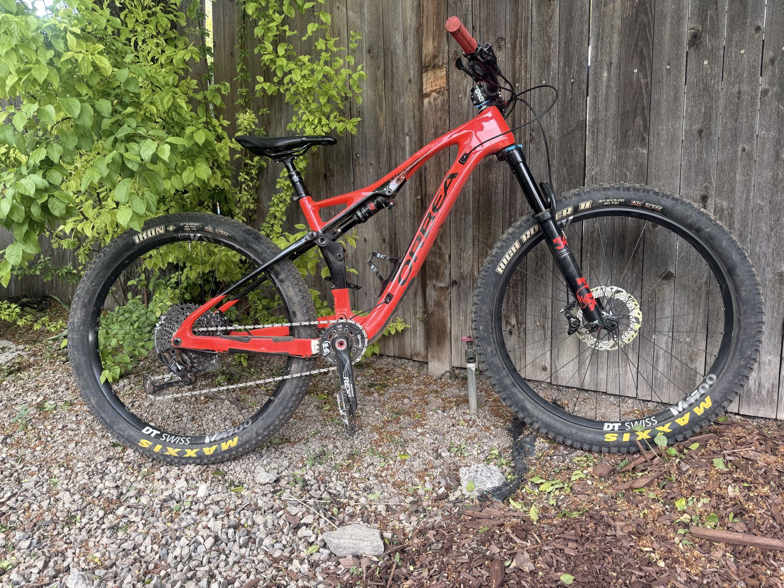 Fox 34 Performance fork up front, full suspension frame, DT Swiss wheels, dropper post, and that signature Orbea red that turns heads at every trailhead. Well cared for and in good condition — this bike has been loved, not abused.