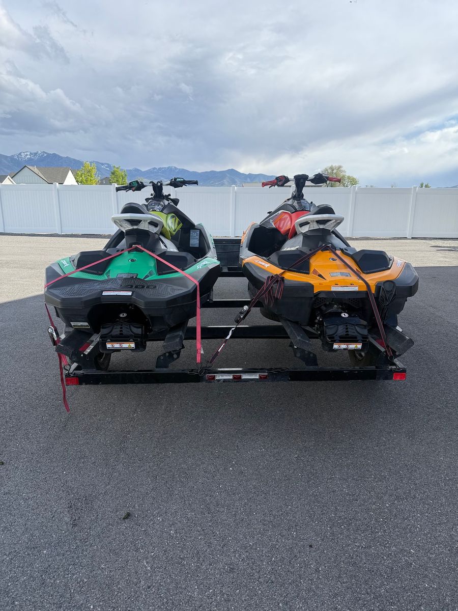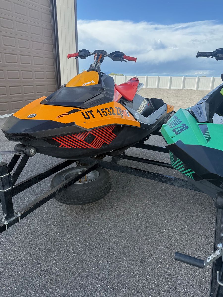 I have a 2020 Seadoo Spark Trix 3 seater with 92 hrs (Green) and a 2019 Seadoo Spark Trix 2 seater with 298 hrs (Orange) for sale. Both have VTS (variable trim system), IBR (Intelligent Brake and Reverse), with the Rotax 900 Ace engine. The 2020 has an upgraded impeller which gives it a little more get up and go as well as some speed. These machines are so much fun! We just don't use them enough. Comes with a Voyager Sport trailer. NO TRADES. Cash or bank check only after verified with bank. Clean Title, Title in hand.