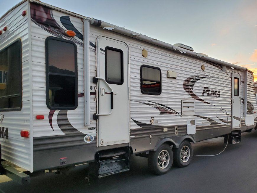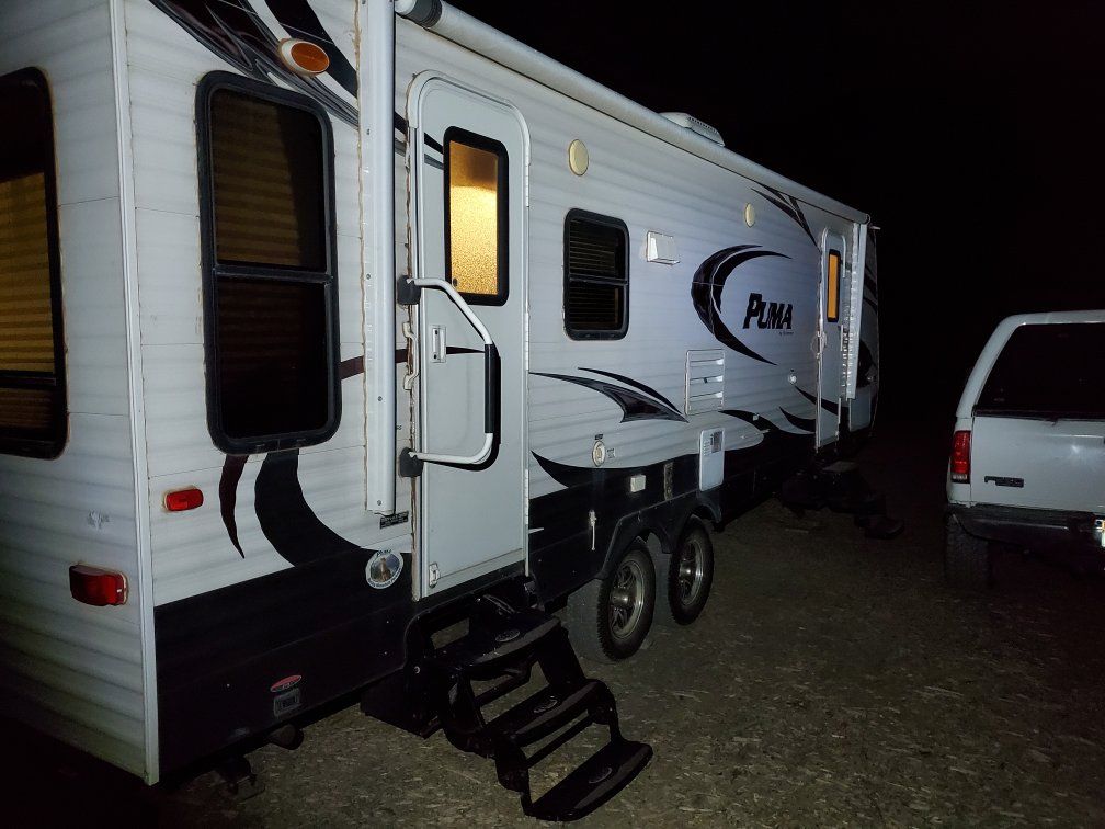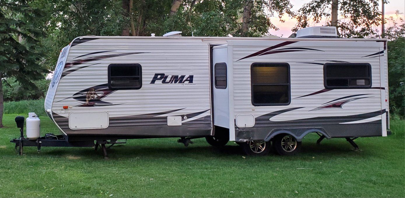 2014 puma 26 trailer. my trailer is in great condition with the exception of one spot where the trailer side swiped a pine tree (front lower near the slide out). it's only cosmetic and doesn't interfere with anything mechanical. the interior is in excellent condition. never had any water damage. everything works great.